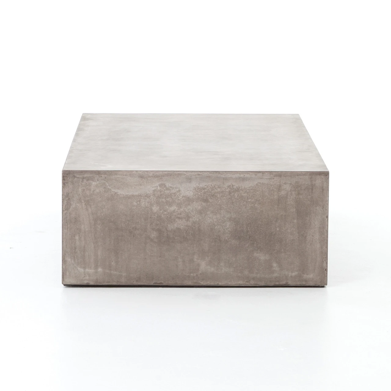 Industrial materials in smoothly refined shapes. Dark grey concrete forms a simple waterfall coffee table. Made for indoor or outdoor spaces— cover or store indoors during inclement weather and when not in use.