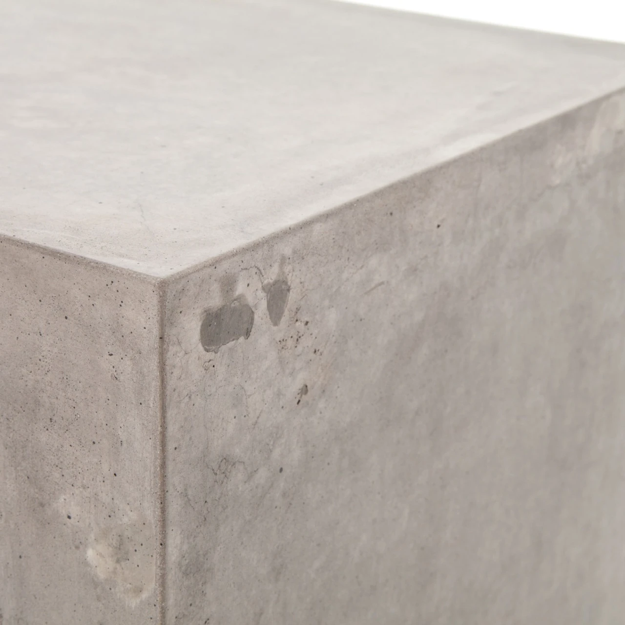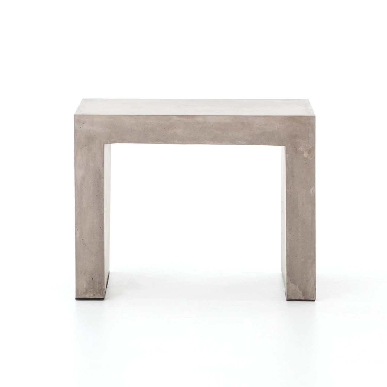 Industrial materials in smoothly refined shapes. Dark grey concrete forms a Parsons style side table. Made for indoor or outdoor spaces— cover or store indoors during inclement weather and when not in use.