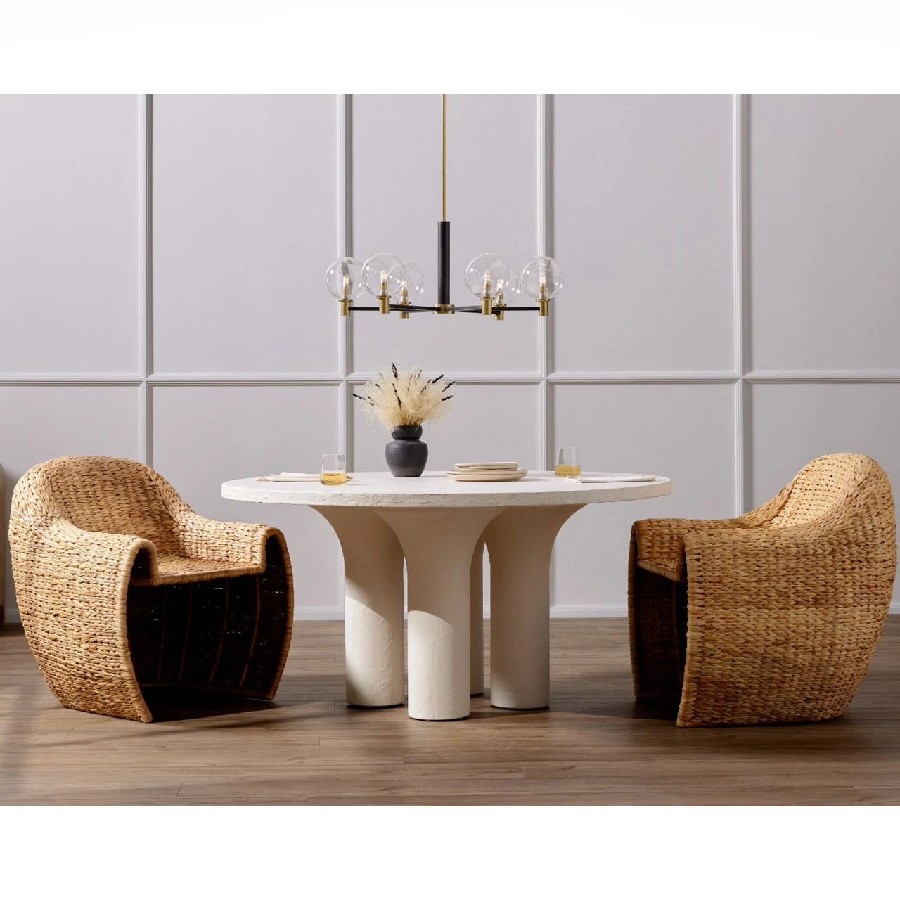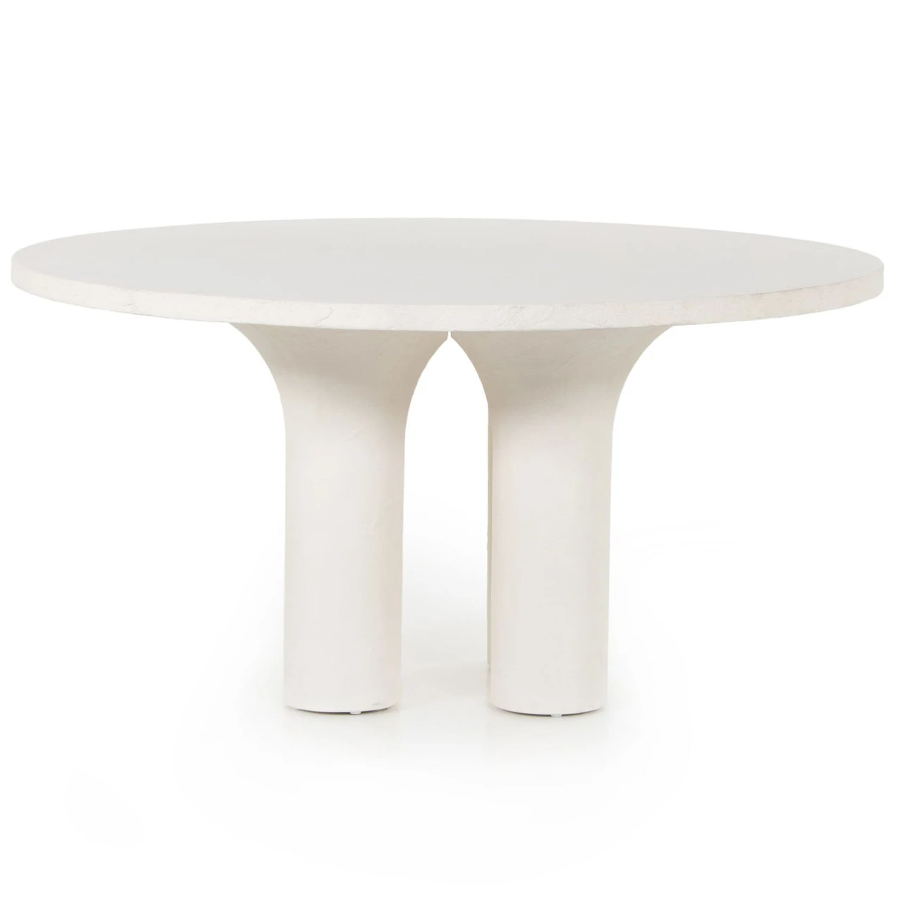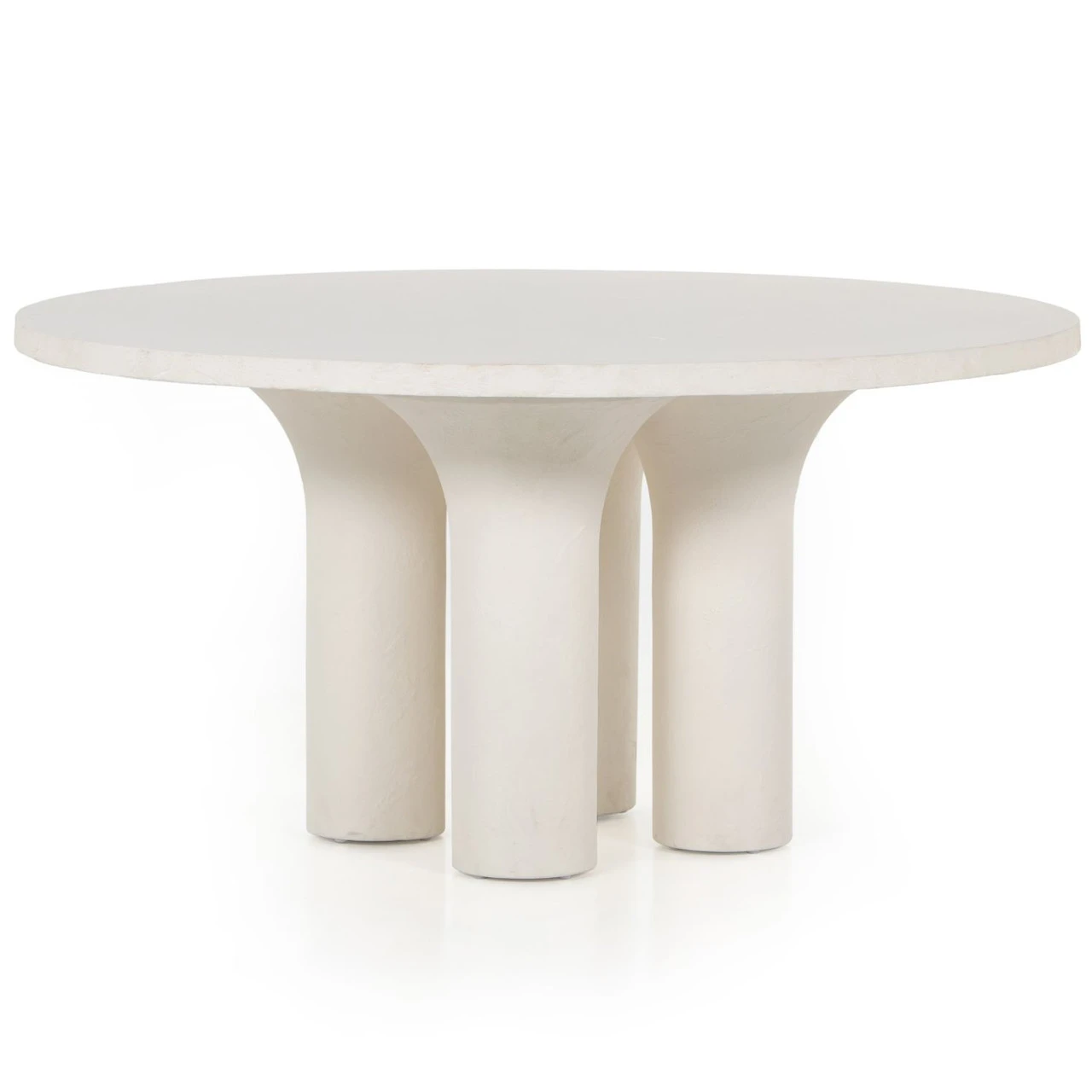 Made from plaster-molded concrete, a cylindrical pillar-style base tapers slightly to support a smooth white-finished tabletop for beautifully complementary texture.