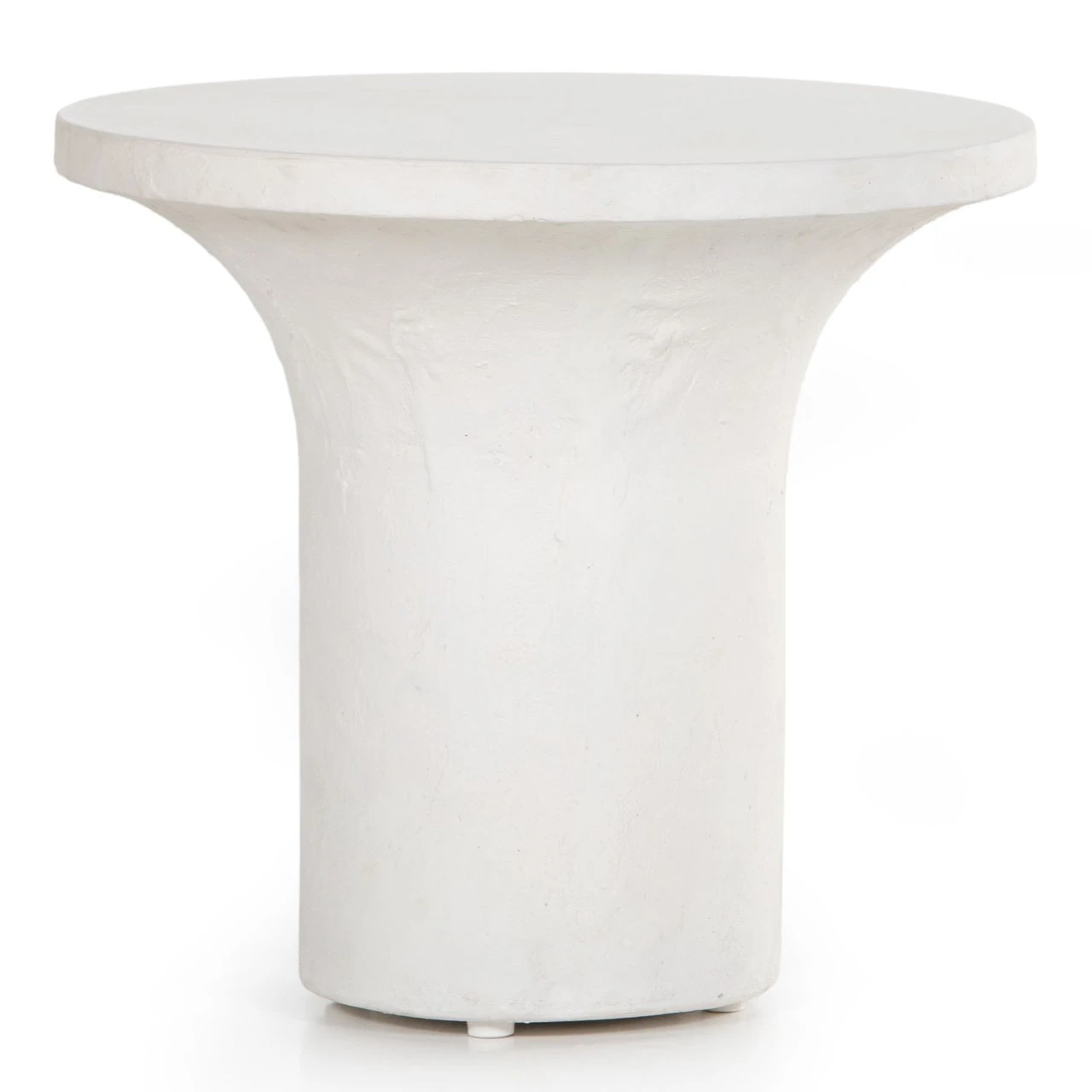 Make a monolithic statement. Made from plaster-molded concrete, a pedestal-style base supports a rounded tabletop of smooth, white-finished concrete, creating a clean, adobe-inspired vibe. Option to pair with matching High End Table for a staggered look.