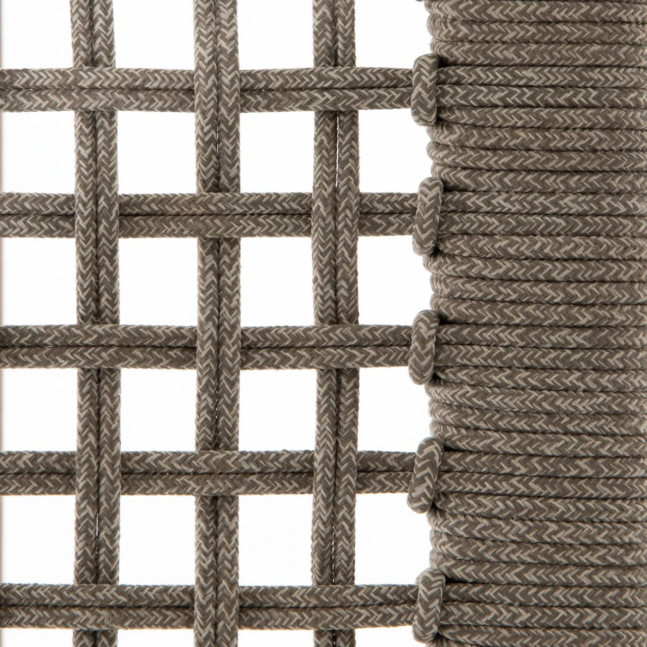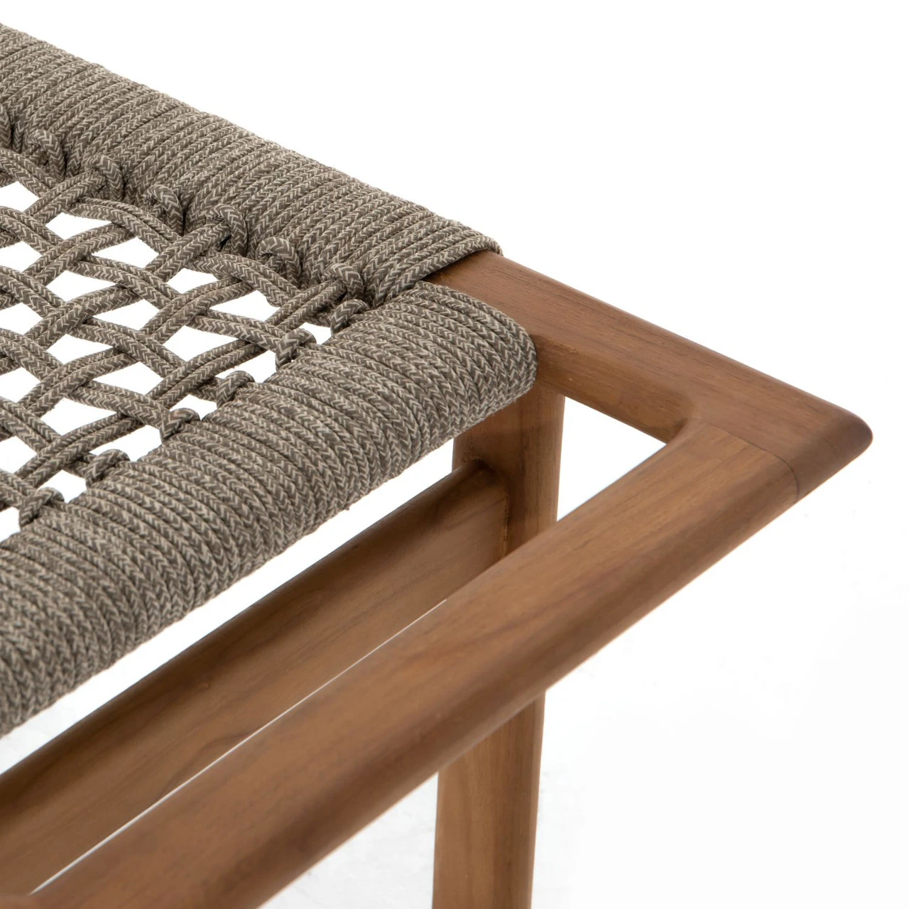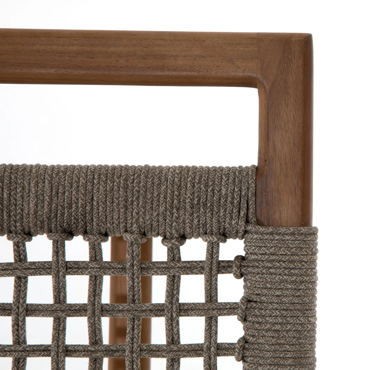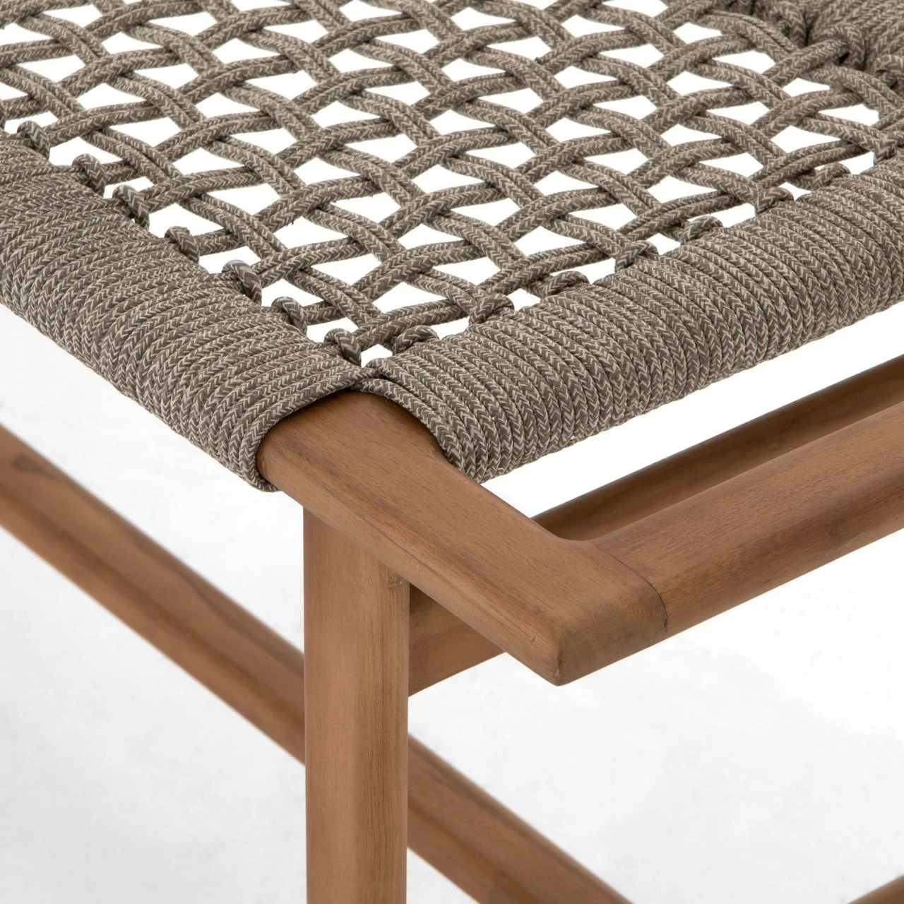 Inspired by the texture-driven nature of Indian design, natural teak forms a slim profile for woven taupe seating, bolstered by a discreet aluminum support. Cover or store indoors during inclement weather.