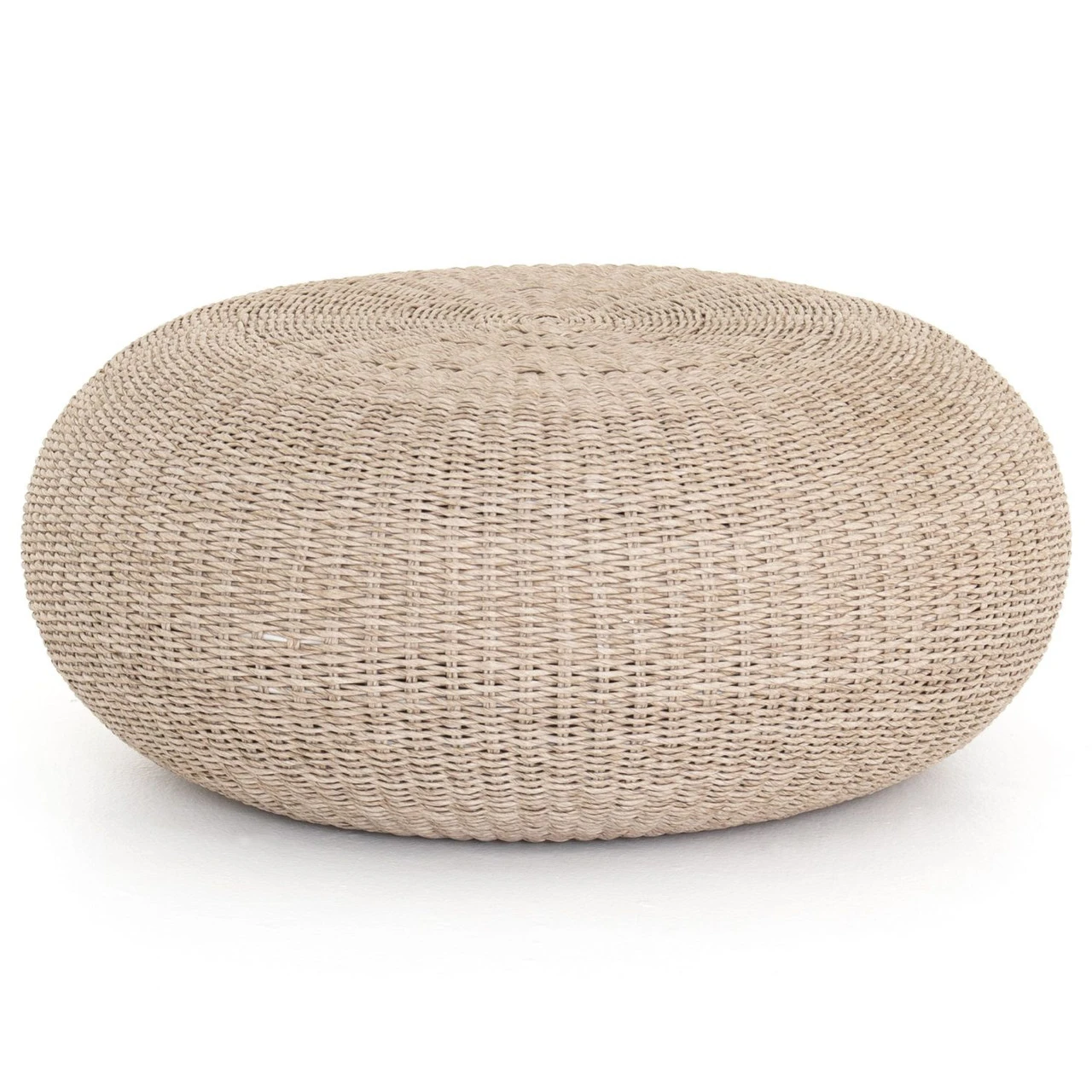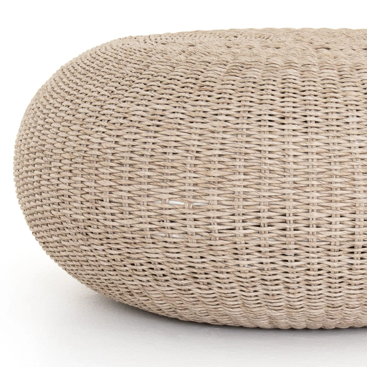All-weather wicker weaves to cover an aluminum frame, with a soft, rounded shape and vintage white finish. Cover or store indoors during inclement weather and when not in use.