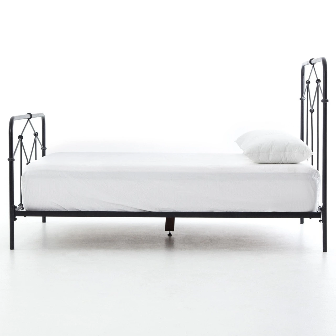 Modern geometric patterns update a design inspired by vintage European metal hospital beds. Simple iron tubing looks airy and feels substantial. Crafted of wrought iron with a unique vintage black finish. Our Piper Queen Size Iron Bed Frame create industrial modern style that is chic and casual, yet simple and can be accented to compliment any bedroom decor.