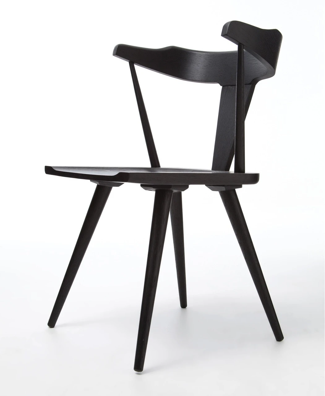 Postwar period design inspirations mix with mid-century Danish-American styling to elegant effect. Airy forms, sweeping lines and bowed, sculptural silhouettes are generously proportioned for a comfortable sit. Solid American oak, walnut and ash woods are finished in deep browns, natural blondes and wire-brushed dry blacks to highlight wonderful grain patterns.