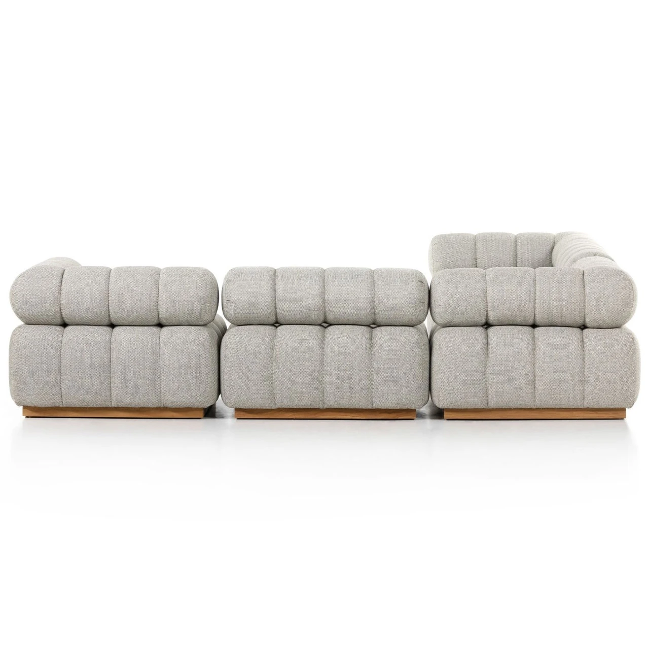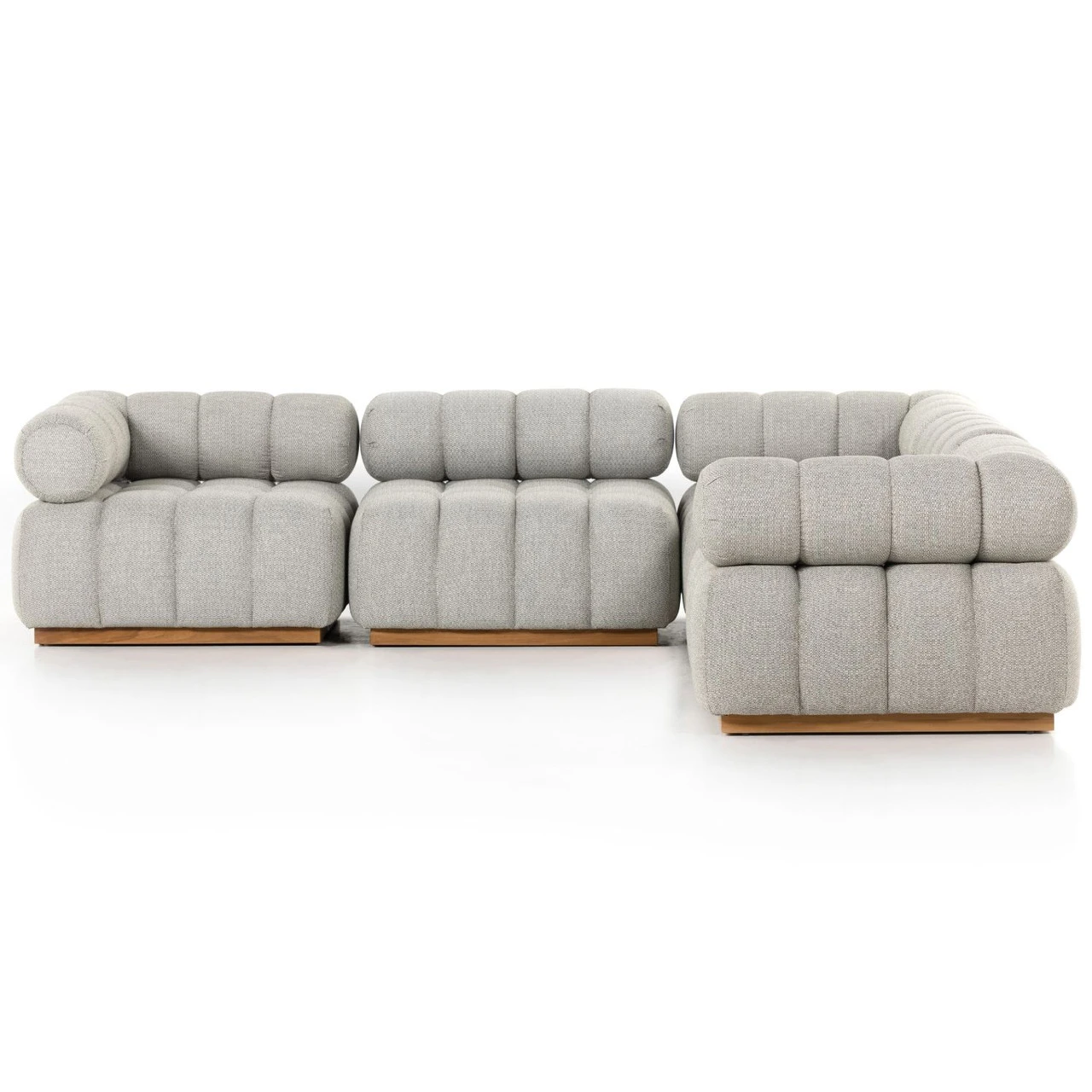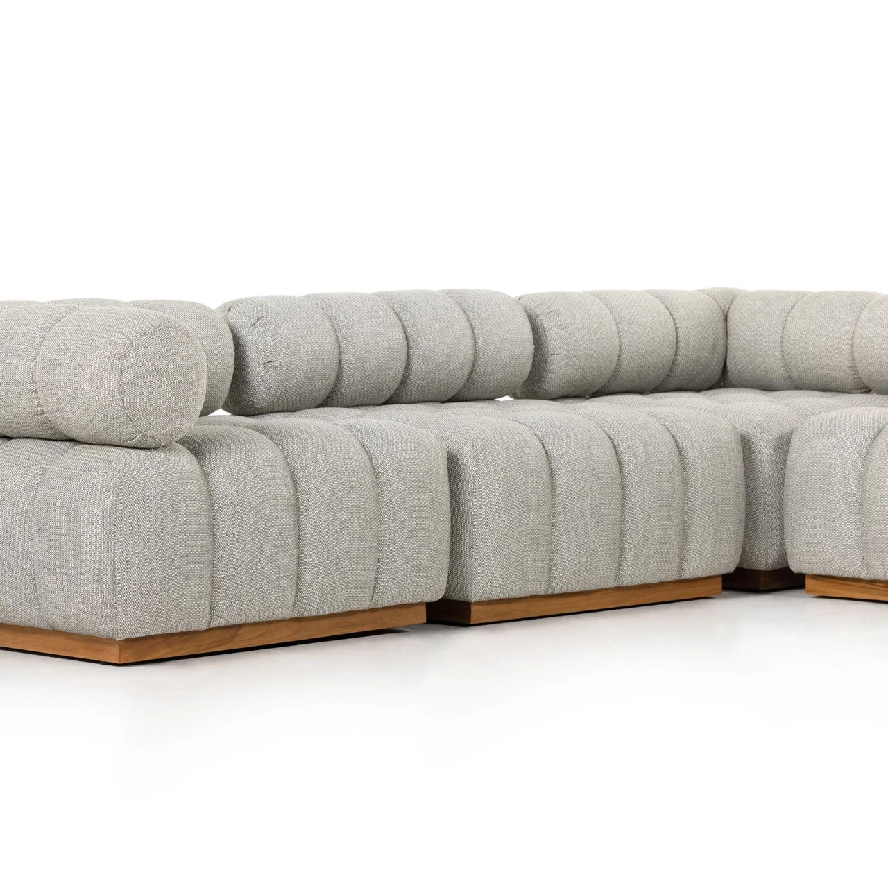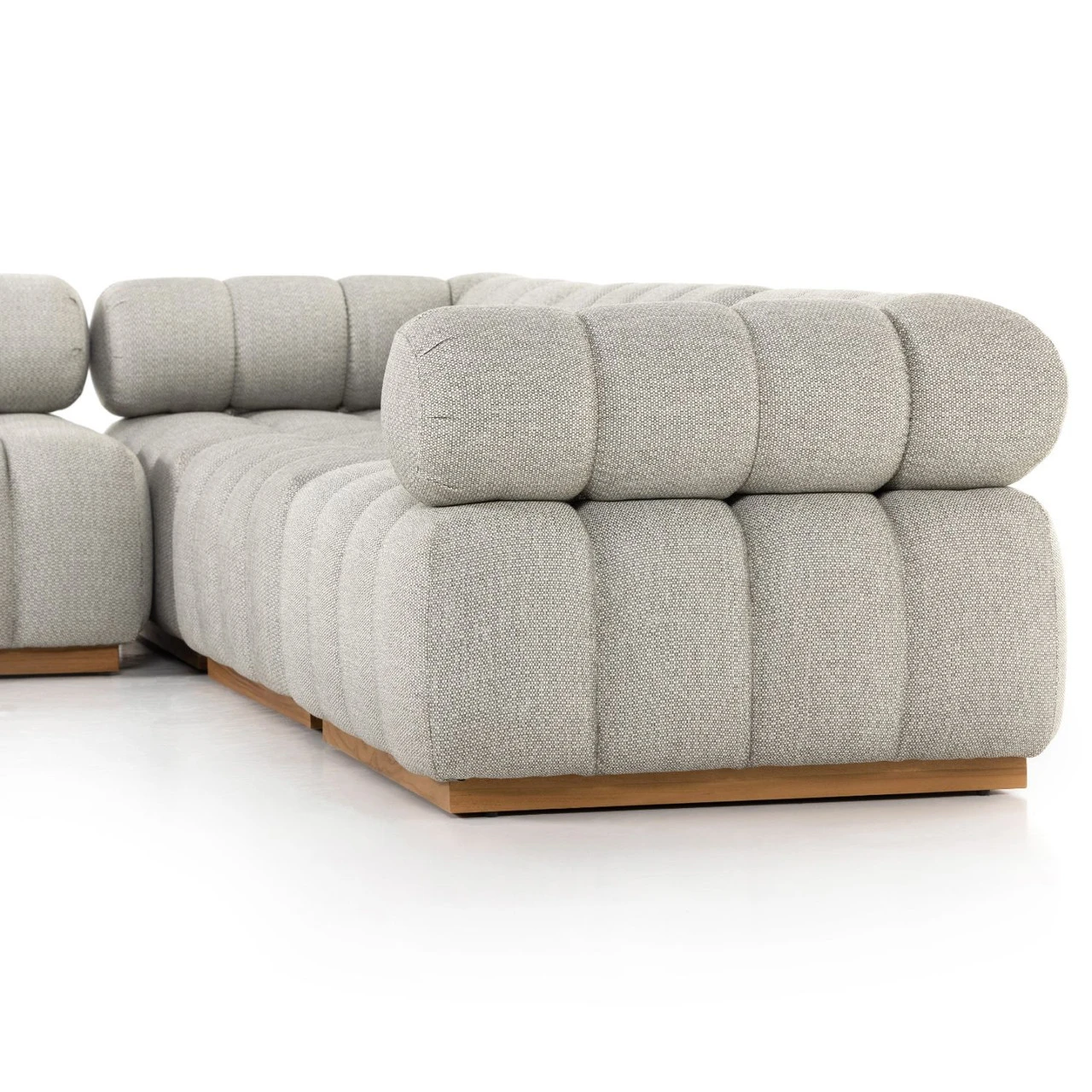 Made with FSC-certified eucalyptus, tapered legs and a paddle arm lend a shapely, structured look to outdoor-friendly three-piece sectional seating with Velcro-secured durable box cushions in a versatile ivory. Linear rope detailing on back for novel texture. Cover or store indoors during inclement weather and when not in use.