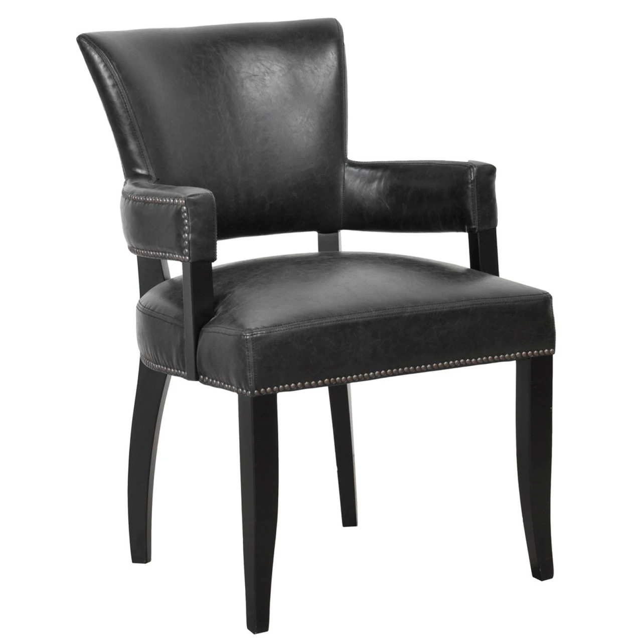 Nailhead trim accents the silhouette of this dining armchair with a delicate gleam and lends subtle contrast against the mink upholstery. With casual elegance, this chair complements most decor while its vegan leather offers long-lasting durability.