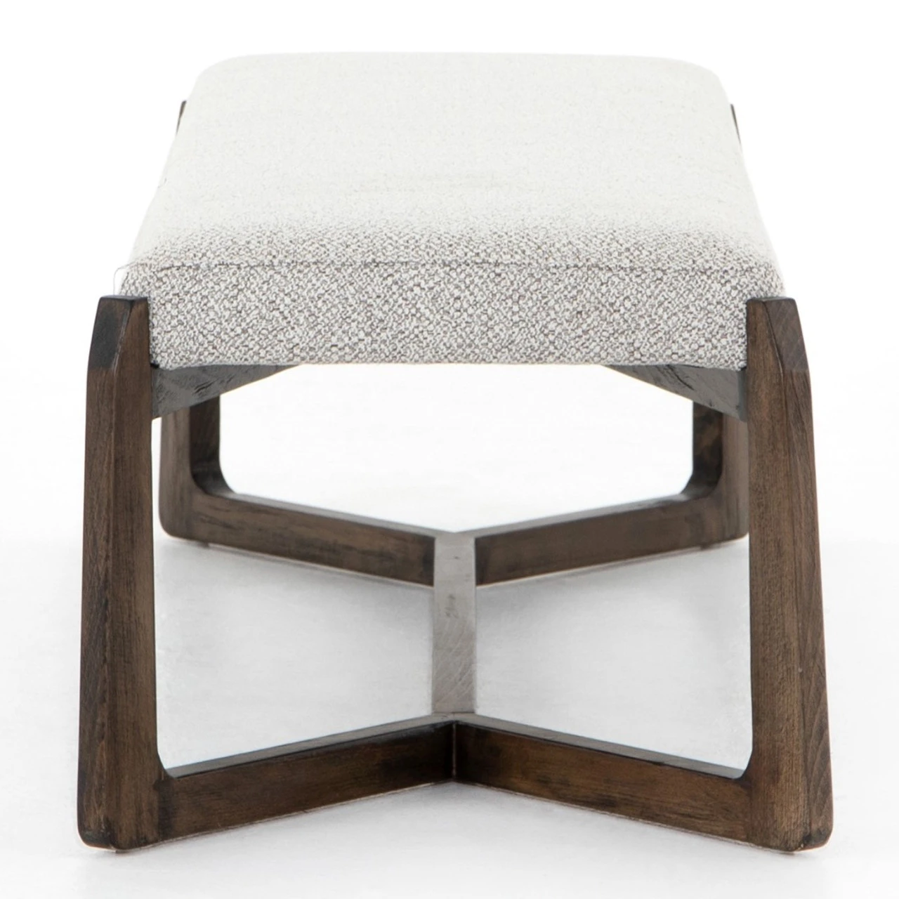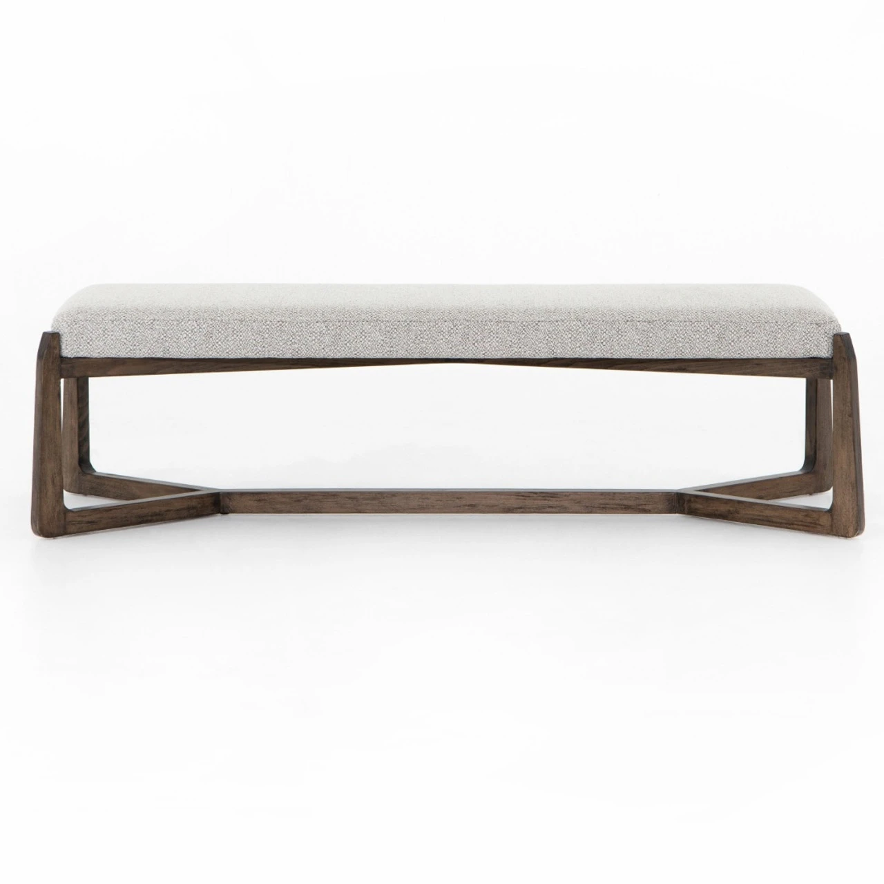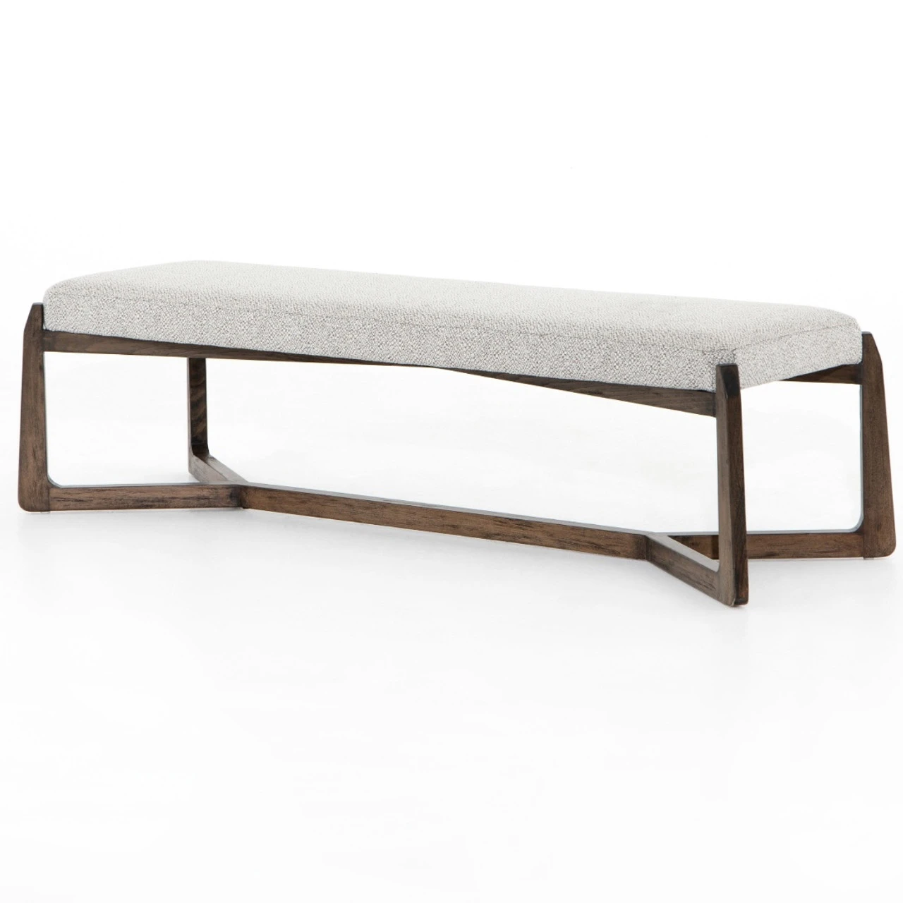 Ideal in an entryway, dining area or at the foot of the bed, an airy, cross-base beechwood frame supports textural bench-style seating, upholstered in a performance-grade fabric exclusive to Zin Home