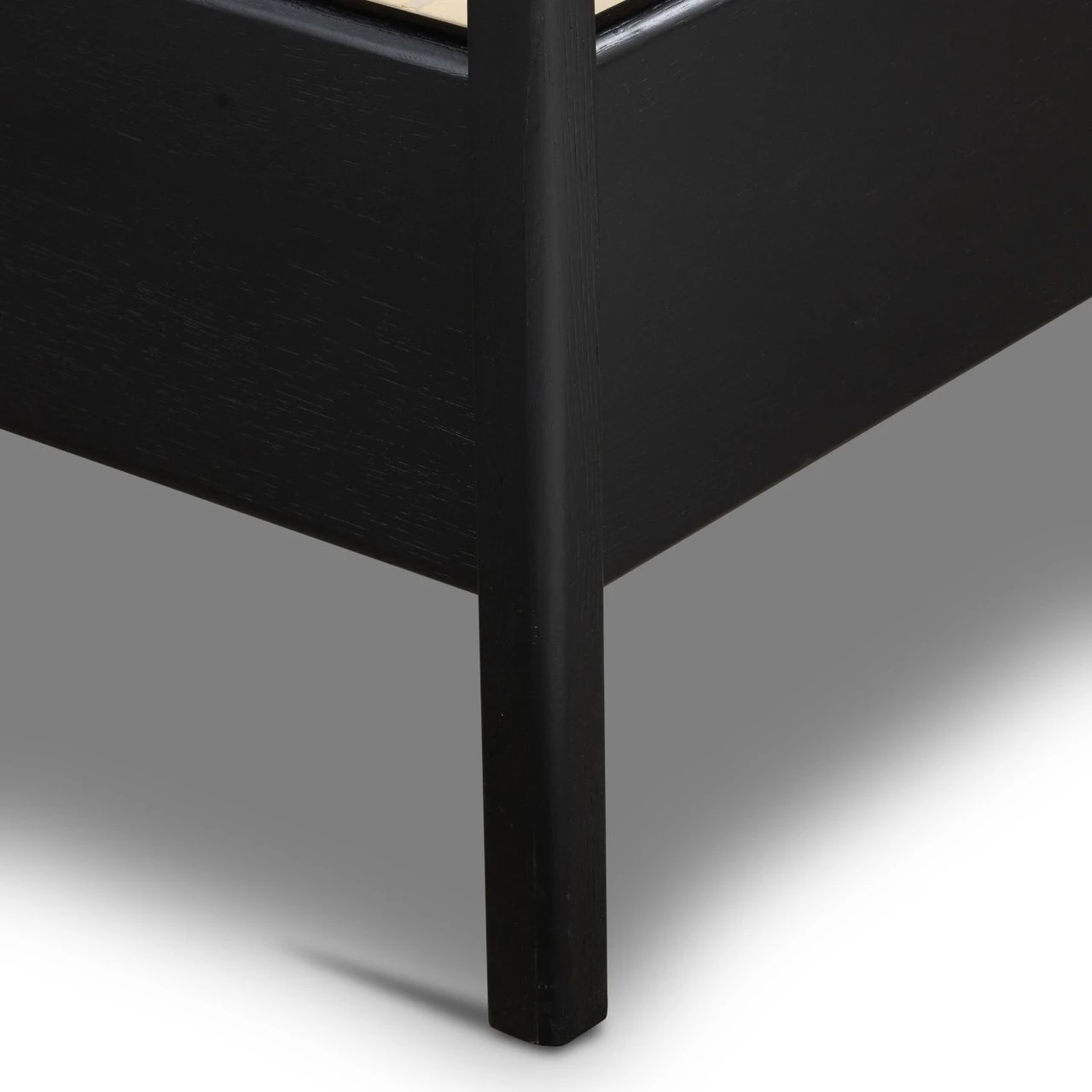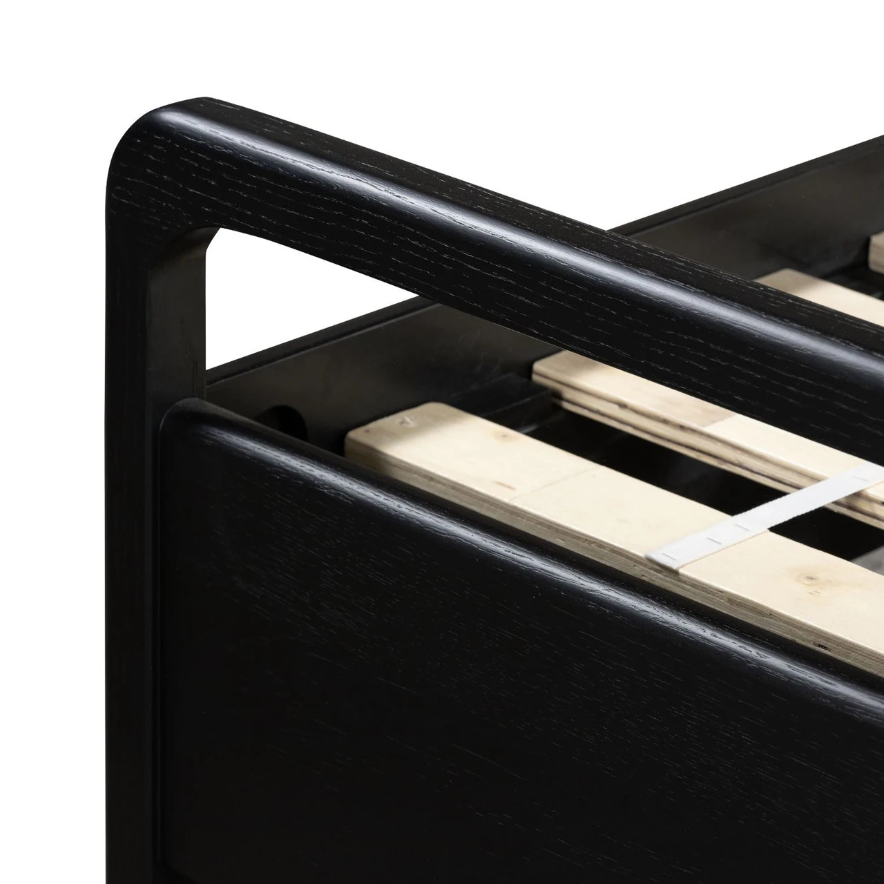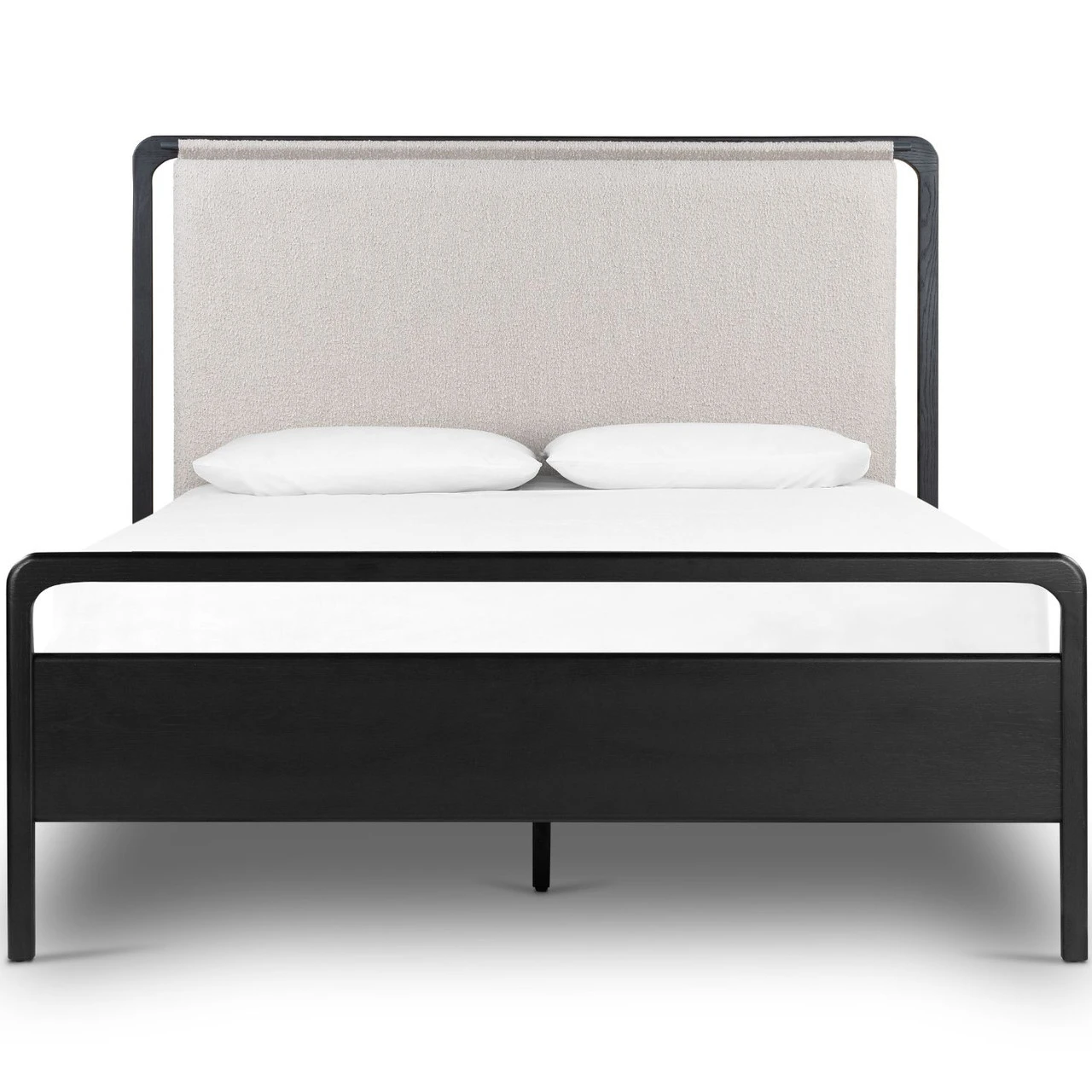 Ebony-finished oak frames a sling-style headboard made from high-performance fabric. This bed is not compatible with an adjustable mattress.