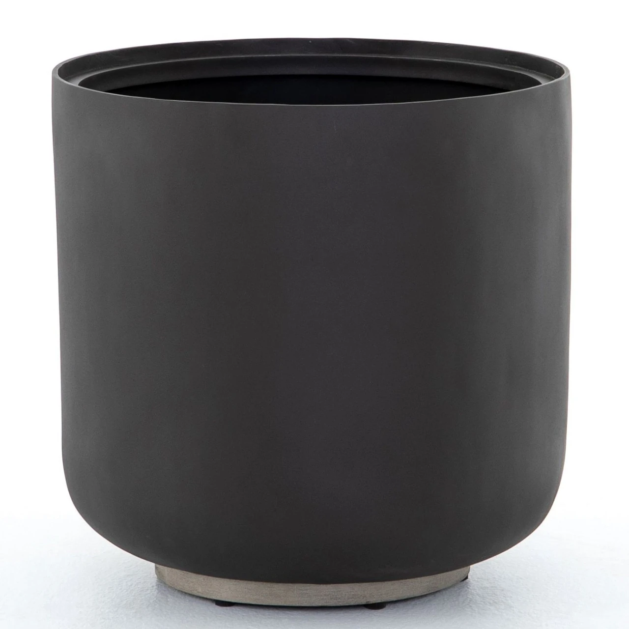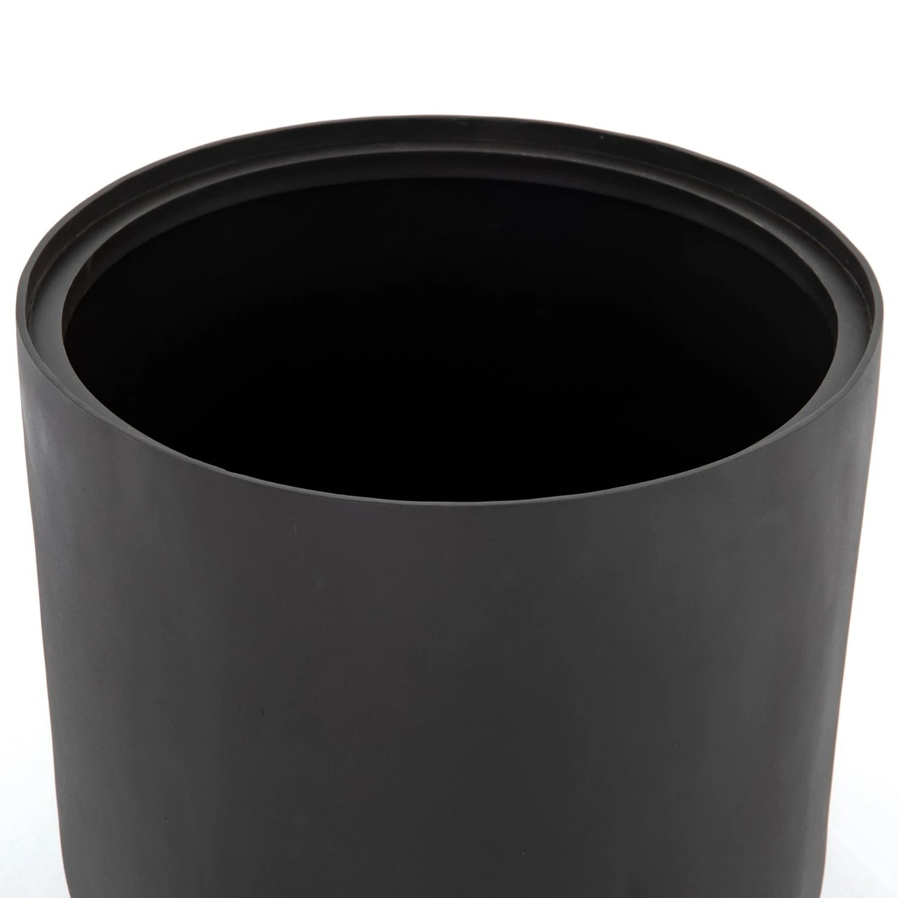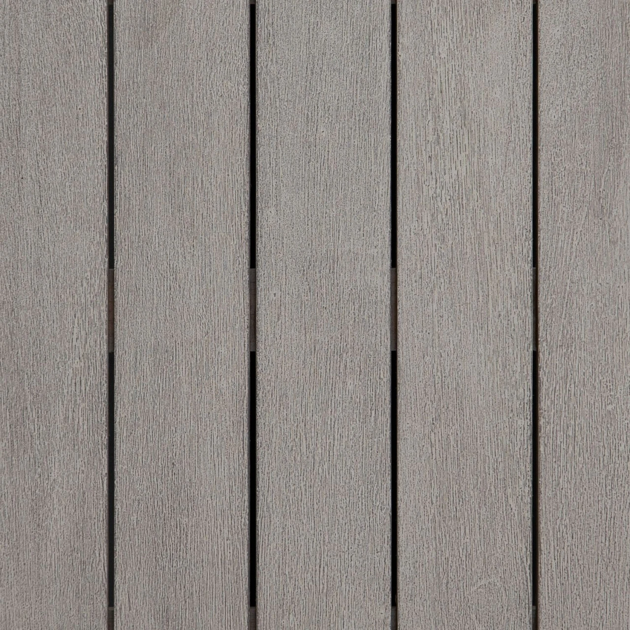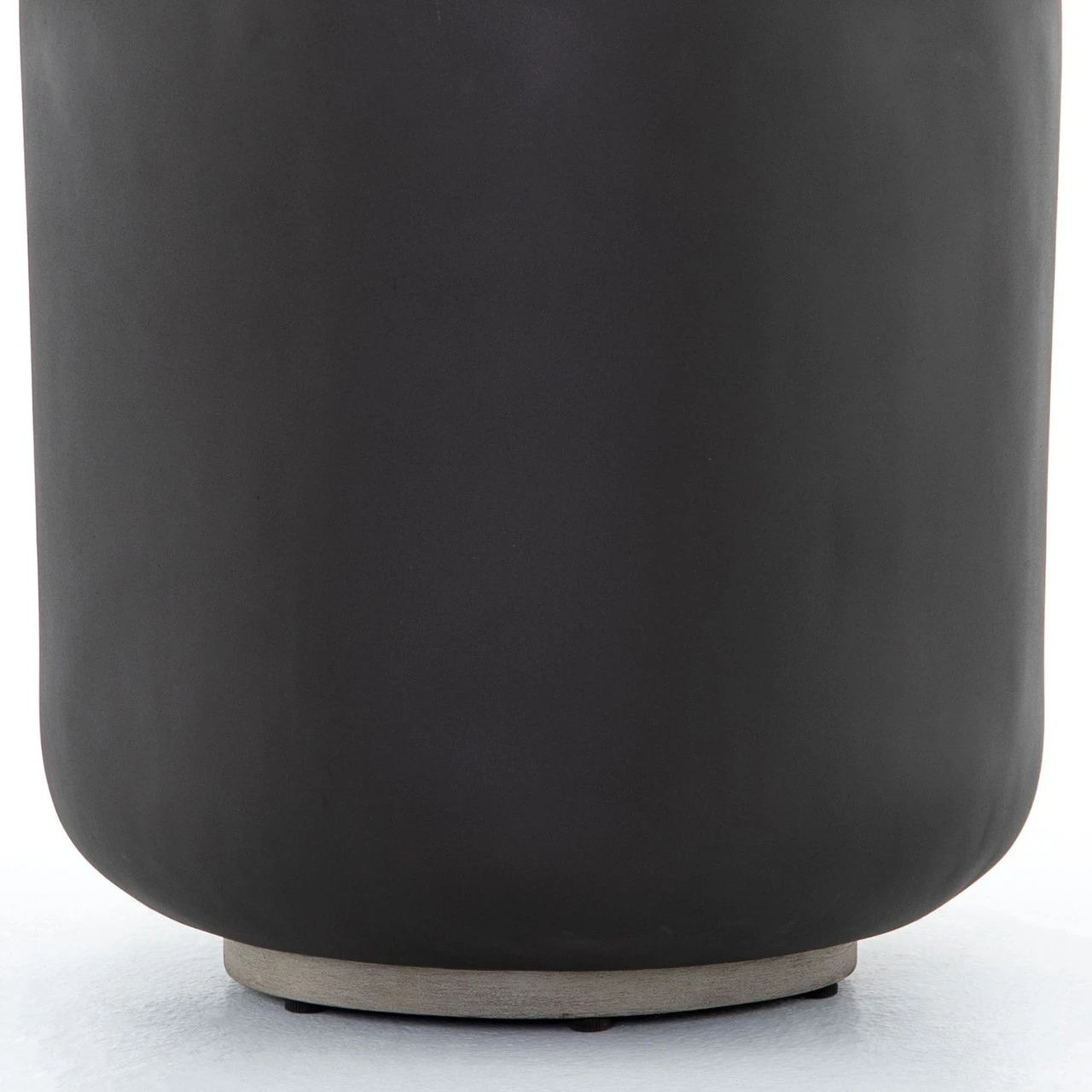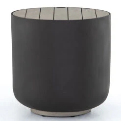 From handy surface to extra storage, a drum-style base of bronze-finished aluminum and removable grey teak top makes for a smart solution indoors or out. Single finger hole for easy top removal. Cover or store inside during inclement weather.