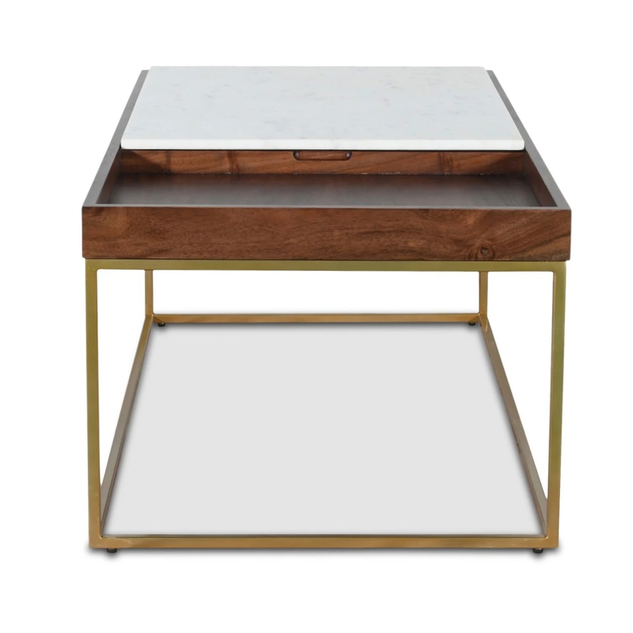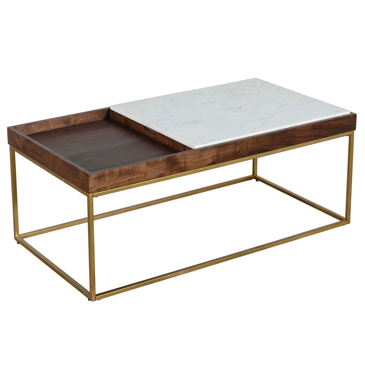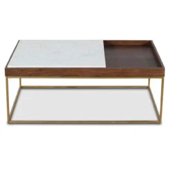 - Crafted with premium smooth marble and reclaimed mango wood in a walnut finish