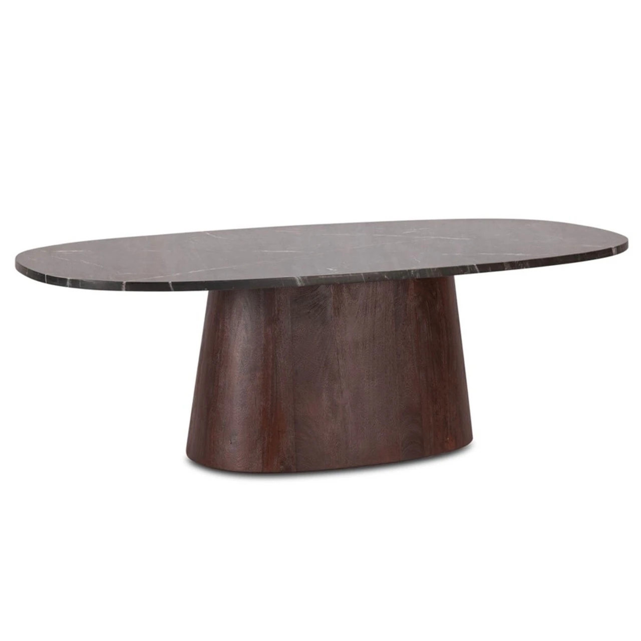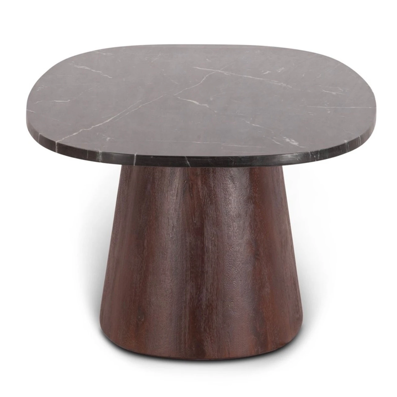 The Serene Collection is a stunning range of furniture that features a solid mango wood pedestal base in espresso with an oval marble top, creating a beautiful and luxurious addition to any dining room. The unique design of this collection combines the warmth and richness of mango wood with the timeless elegance of marble, resulting in a piece that is both sophisticated and modern. With its expert craftsmanship and high-quality materials, the Serene Collection is a must-have for anyone seeking to add a touch of luxury to their home decor.