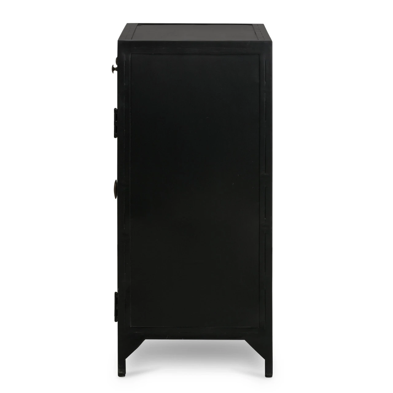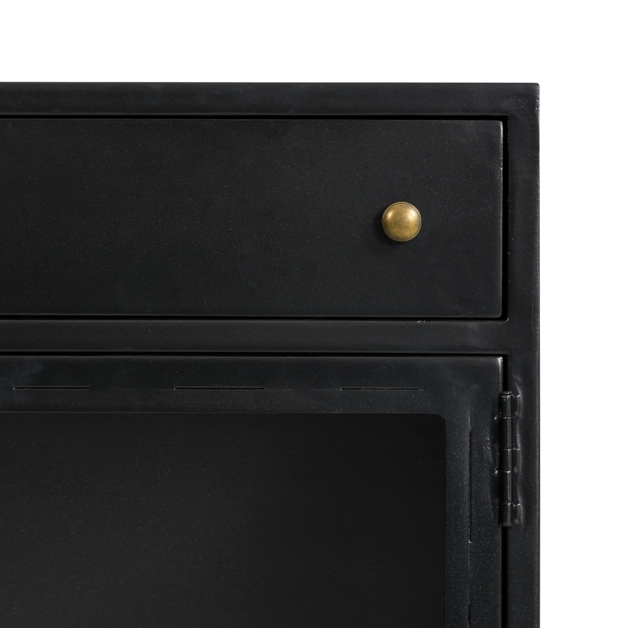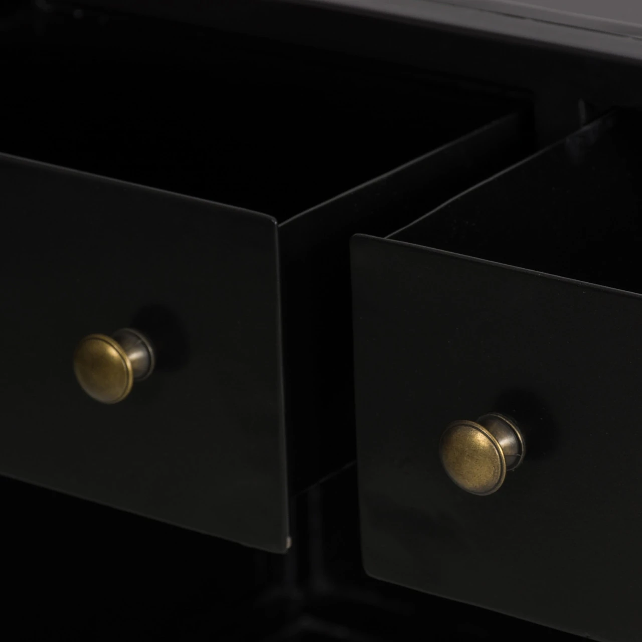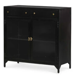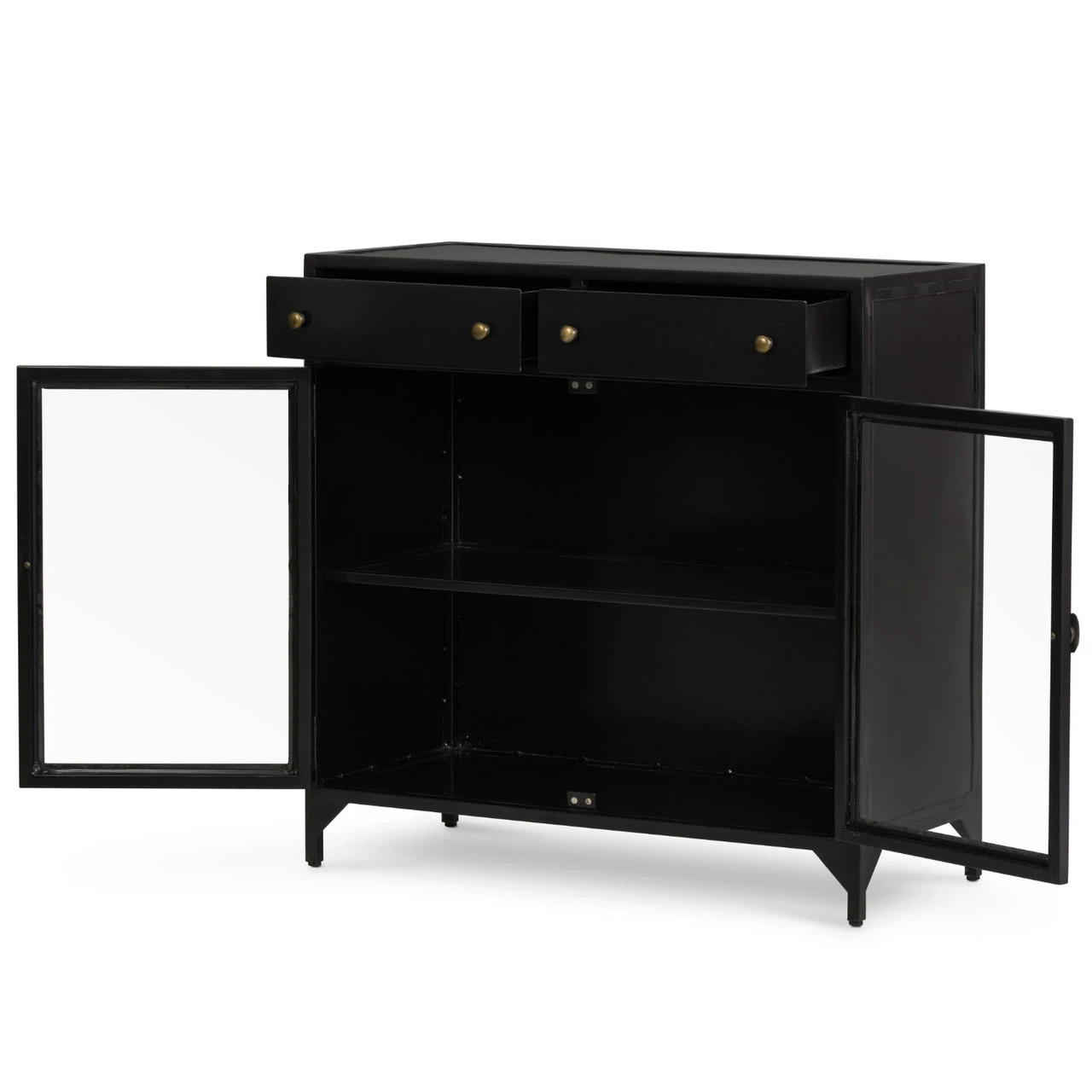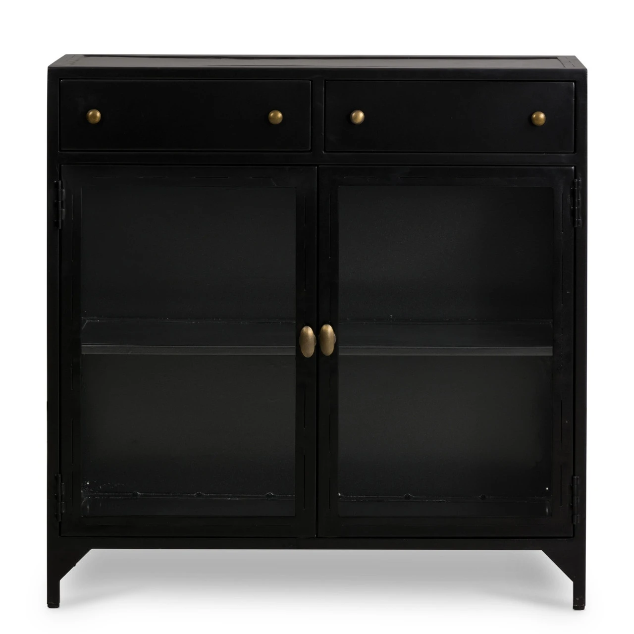 Shadowbox-style cabinetry gives your inner collector a place to play. Frame prized possessions in a glass enclosure with matte-black metal and brass knobs.