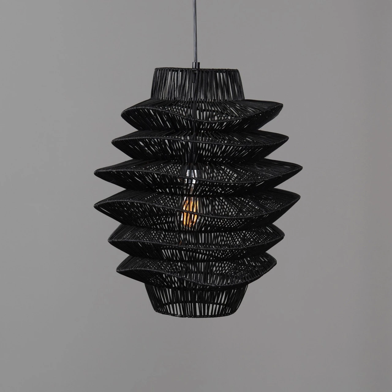 Enhance your space with this medium black pendant featuring a distinctive accordion-like shade. Also available in white, this pendant creates a dazzling effect as light slips through the shade and dances across the walls and ceiling. Bulb not included.