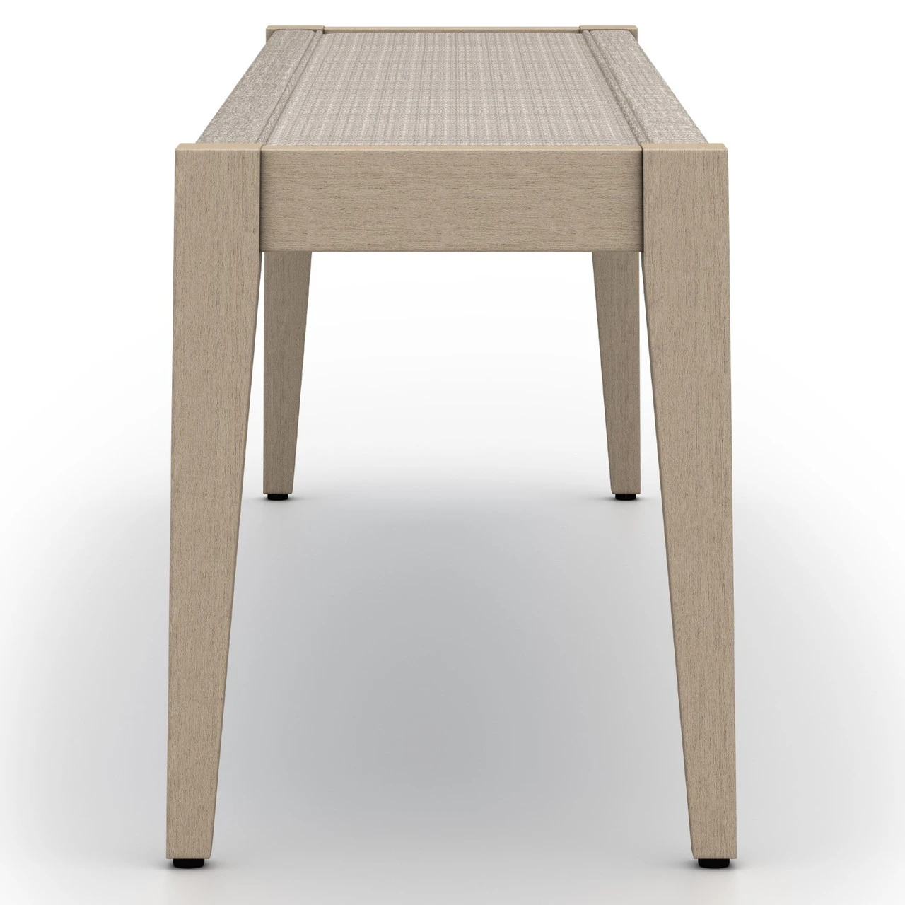 Modern materials ready a stylish silhouette for outdoor dining. FSC-certified teak forms a clean frame for UV-resistant and water-repellent fabric in an invitingly neutral hue. Cover or store indoors during inclement weather and when not in use.