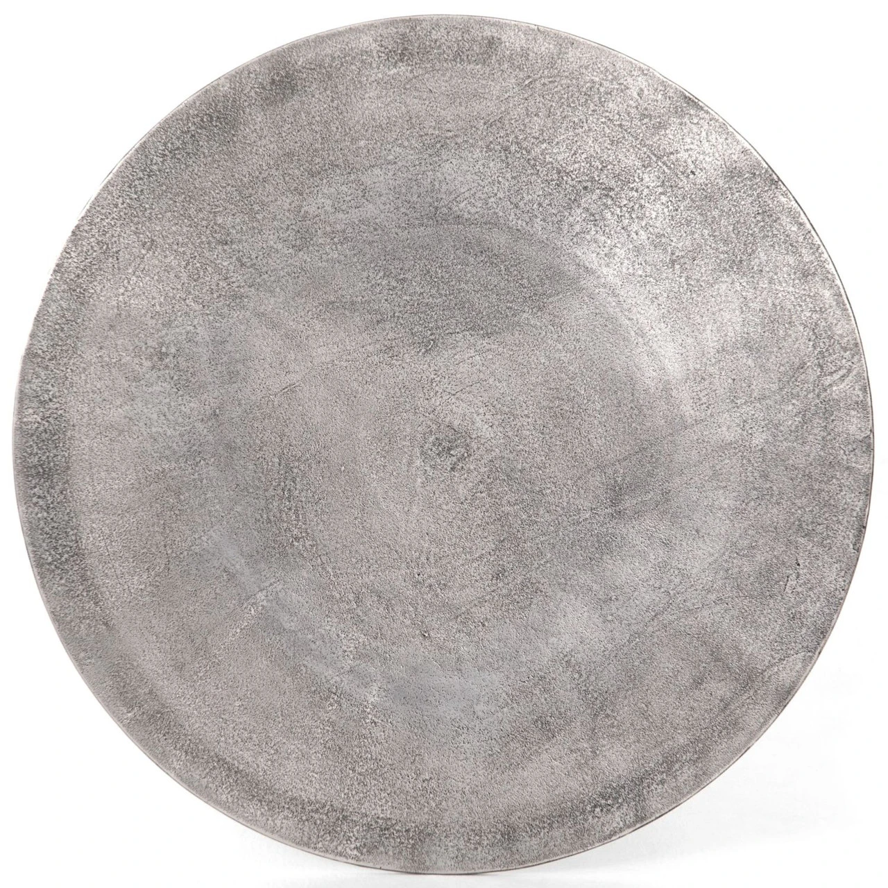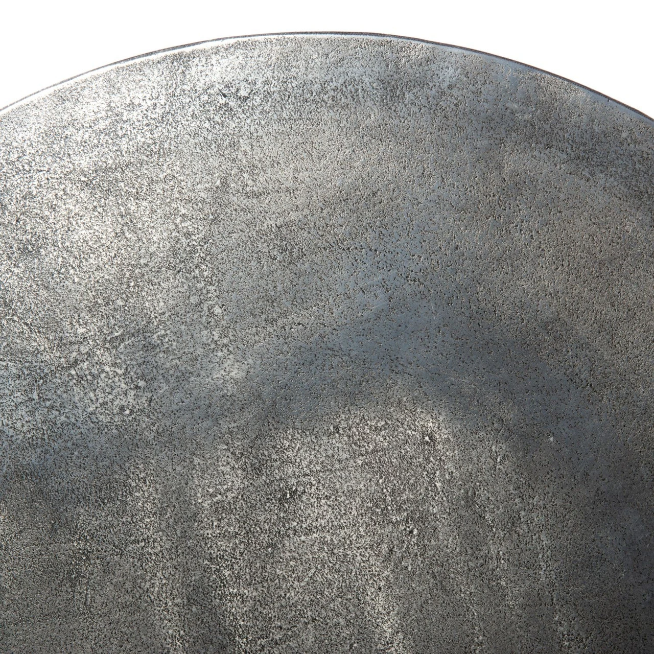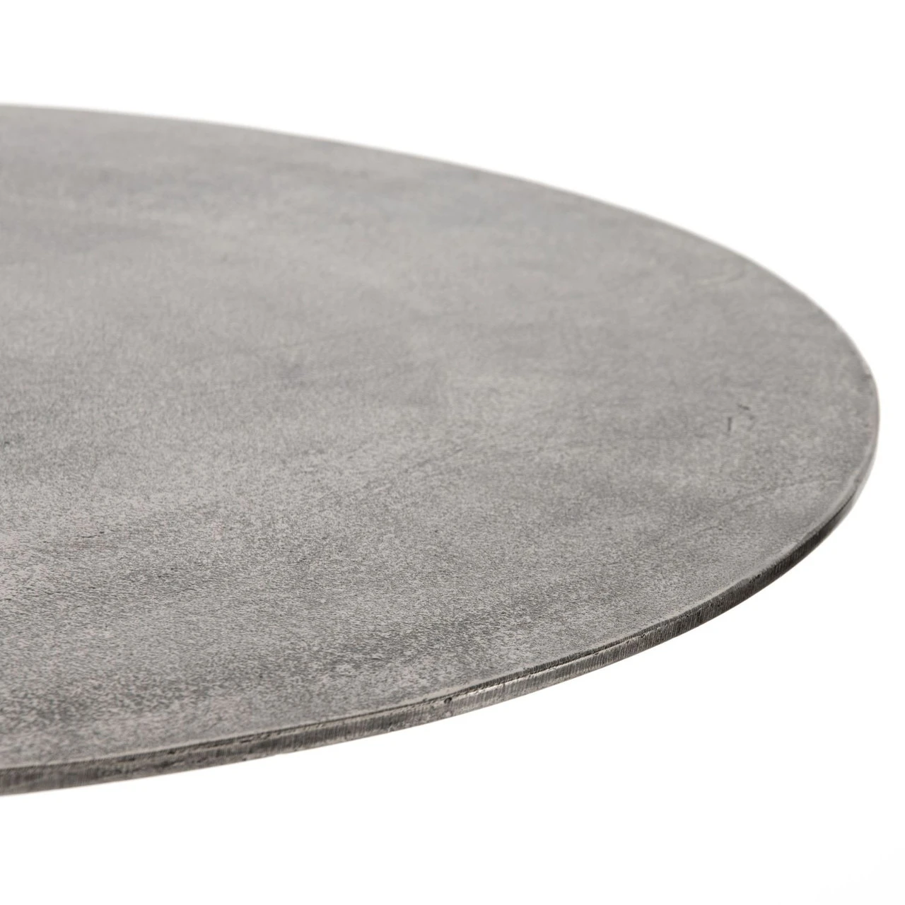 Classic tulip shaping in textural cast-aluminum makes for a modern pub table. Finished in a raw antique nickel to bring out alluring highs and lows, indoors or out. Cover or store inside during inclement weather and when not in use.