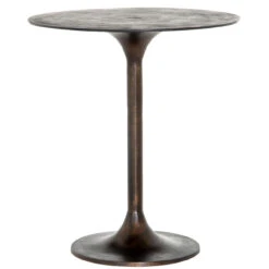 Classic tulip shaping in textural cast-aluminum makes for a modern pub table. Finished in antique rust to bring out alluring highs and lows. Great indoors or out — cover or store indoors during inclement weather and when not in use.