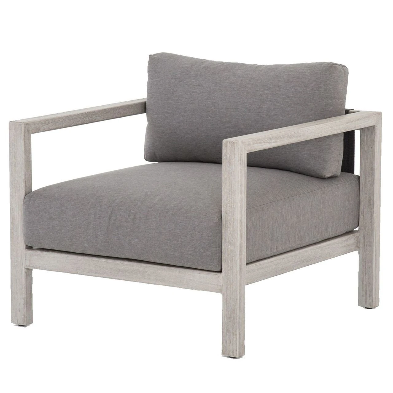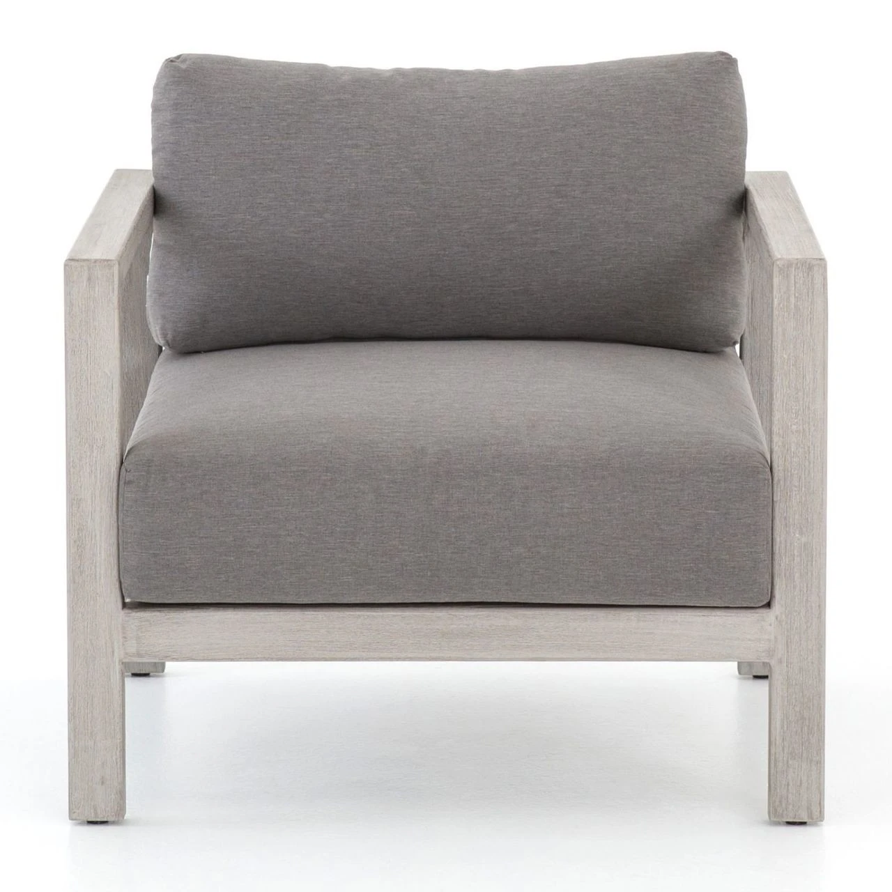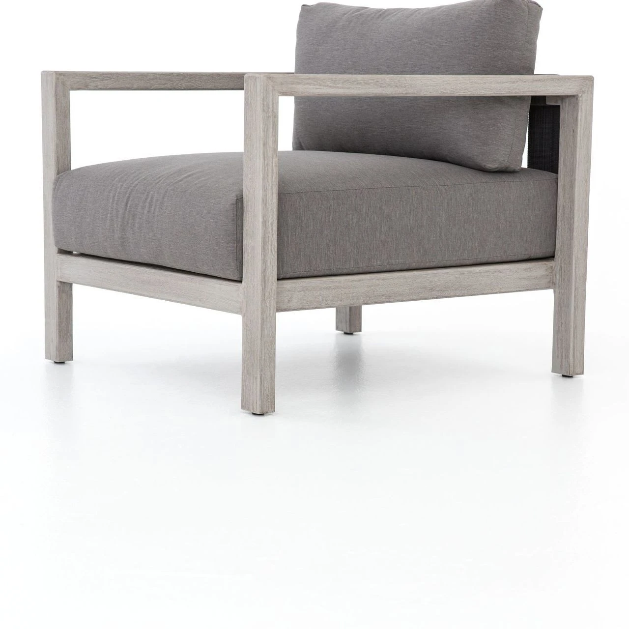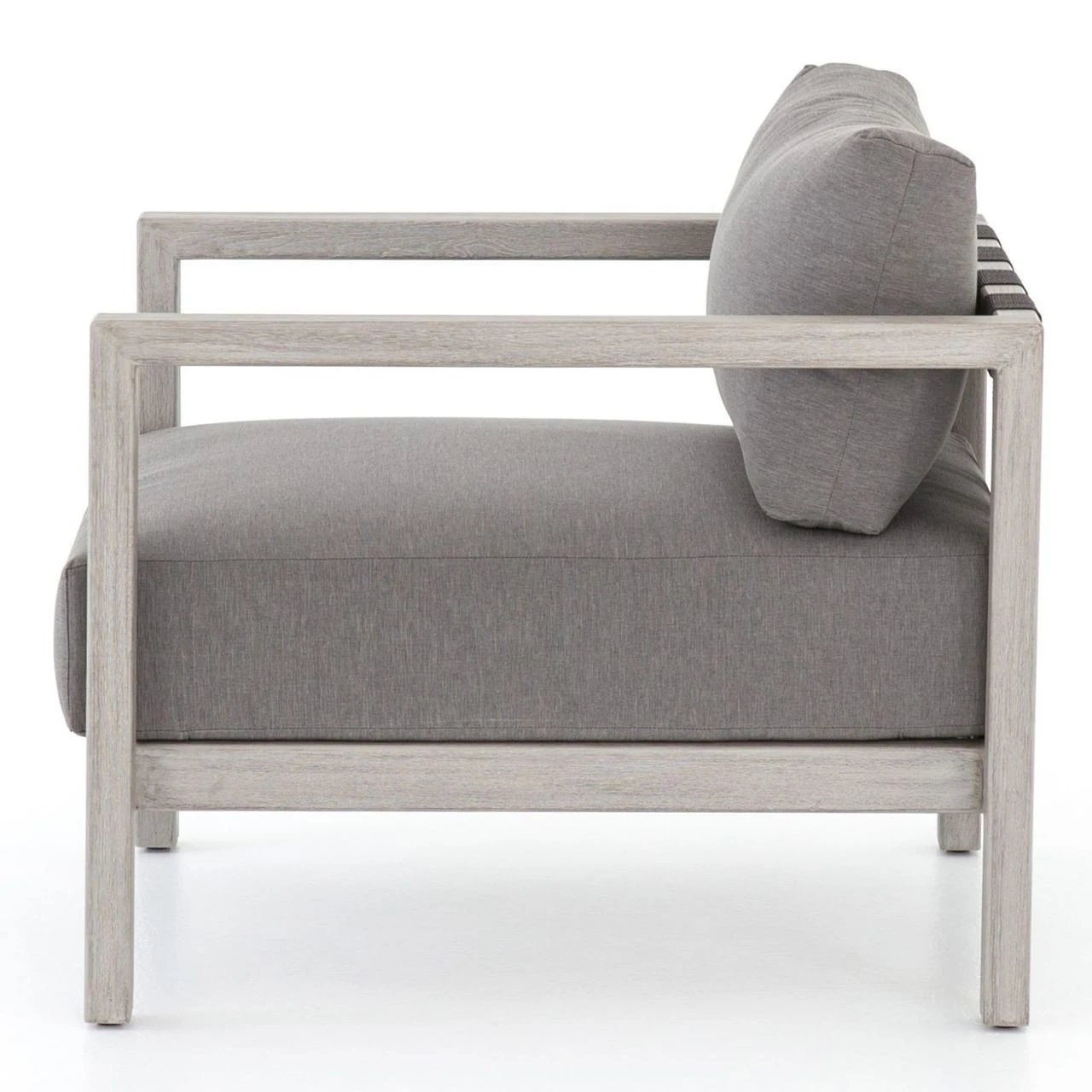 Inspired by the linear silhouettes and clean geometry of mid-century modern outdoor furniture, our Sonoma Grey Teak Outdoor Club Chair features grey teak wood that forms a clean frame for UV-resistant and water-repellent Sunproof fabric plump cushions in an inviting charcoal color. Dark grey back straps add intrigue to this modern outdoor arm chair, built for luxurious lounging for many summers to come.