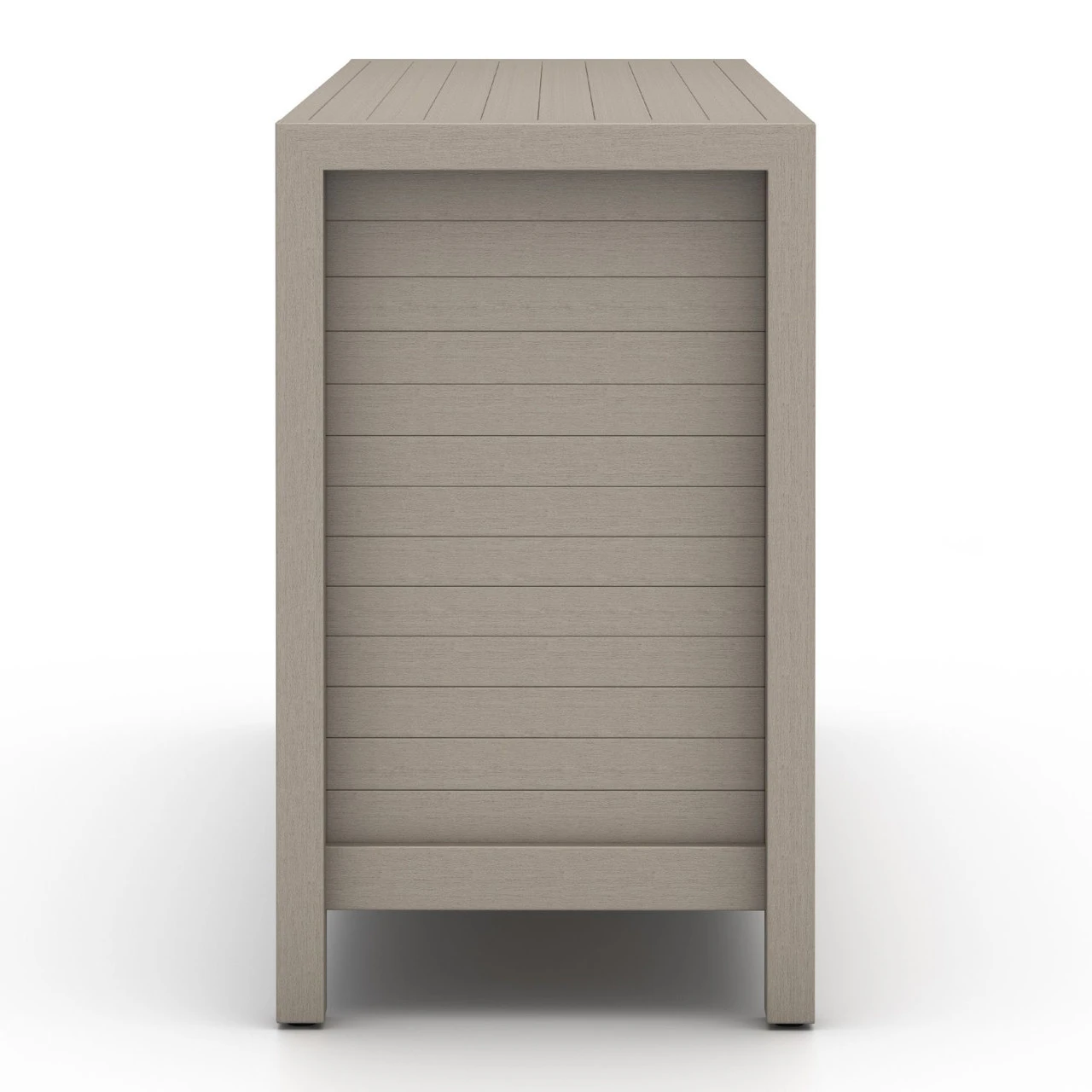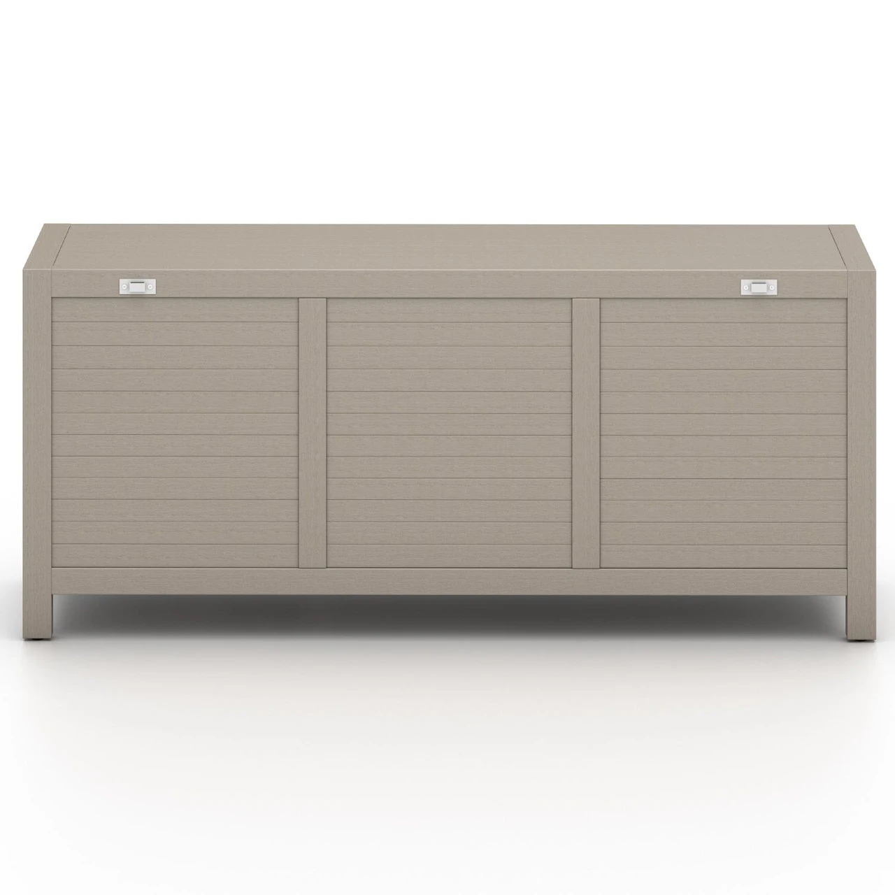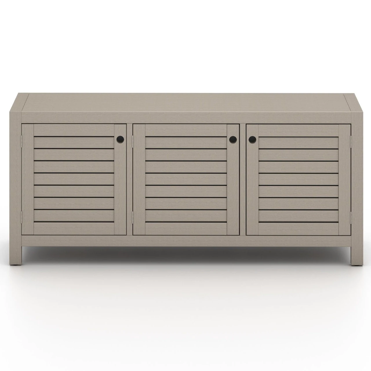 Take outdoor storage to new heights. Finished in a weathered grey, solid FSC-certified teak forms a modern-minded sideboard, with slatted fronts for a light, linear look. Cover or store indoors during inclement weather and when not in use.