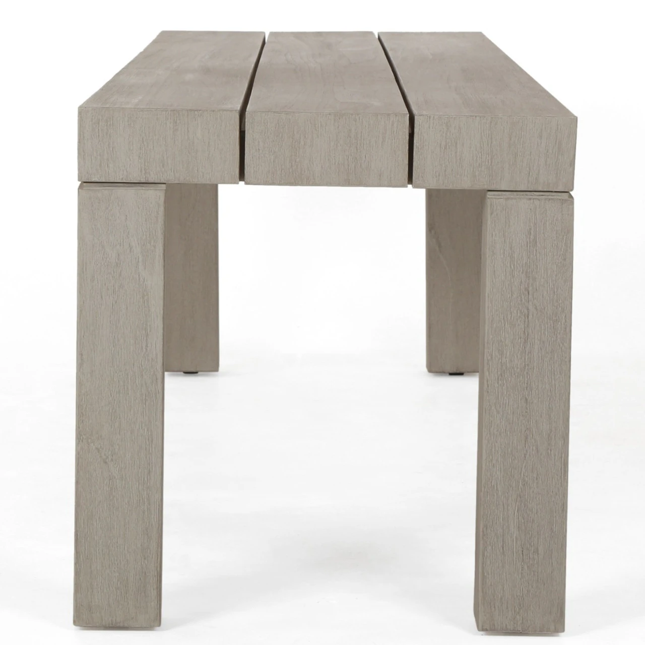 Clean and angular for streamlined effect. Planks of grey teak take on weathered grey tones for neutral versatility. Natural graining reveals organic roots. Cover or store inside during inclement weather and when not in use.