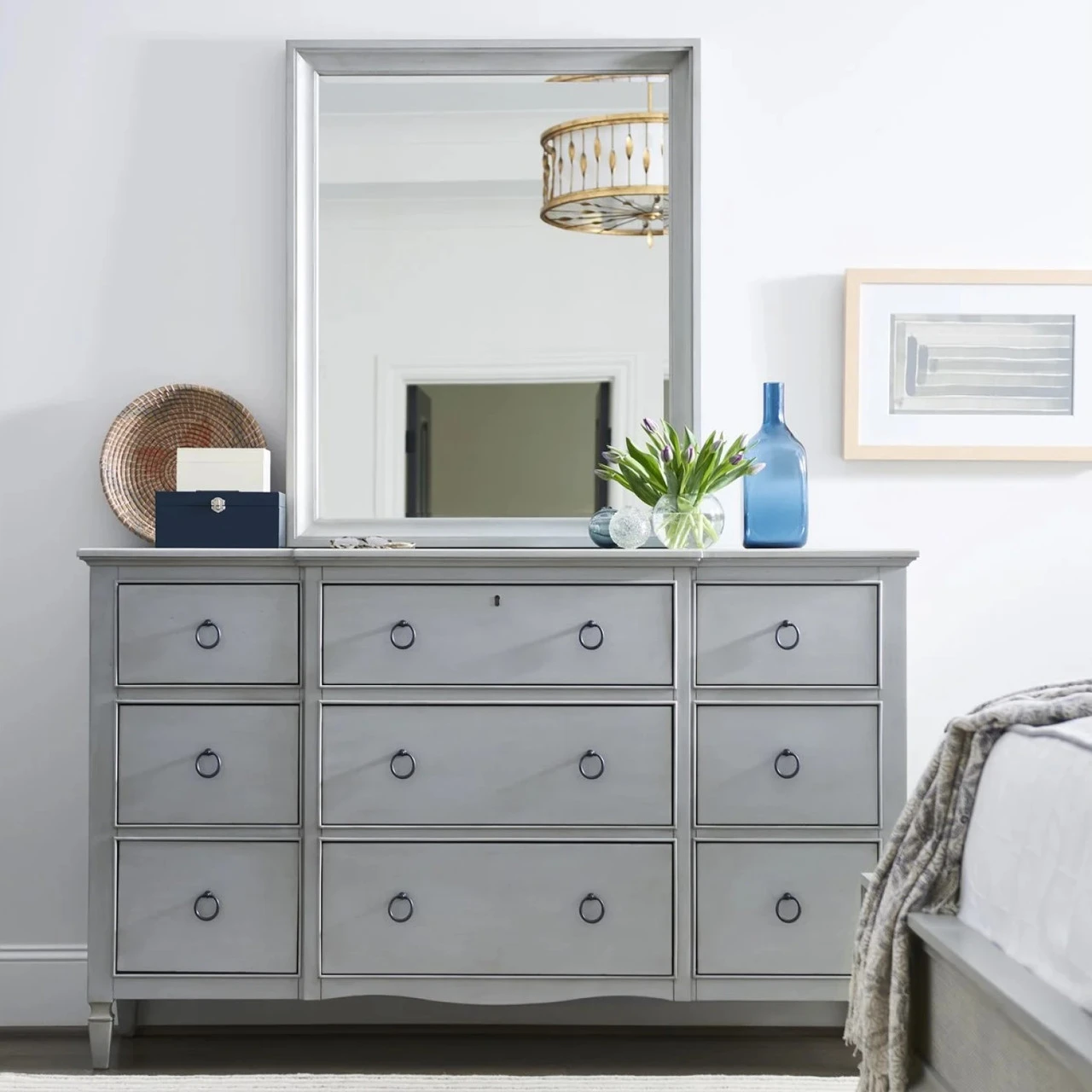 Featuring beveled glass and a light gray finish, the Summer Hill Mirror can be displayed horizontally or vertically.