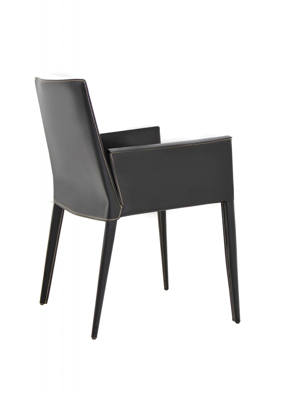 Tiffany leather arm chair is a stylish arm chair with a comfortable upholstered seat and backrest with steel tube frame structure wrapped by regenerated leather. Each leg is tipped with a plastic glide inserted to the metal tube. This arm chair is perfect solution for waiting or reception areas. The chair has a slightly padded seat upholstered with regenerated leather only. The arm chair is suitable for both residential and commercial use.