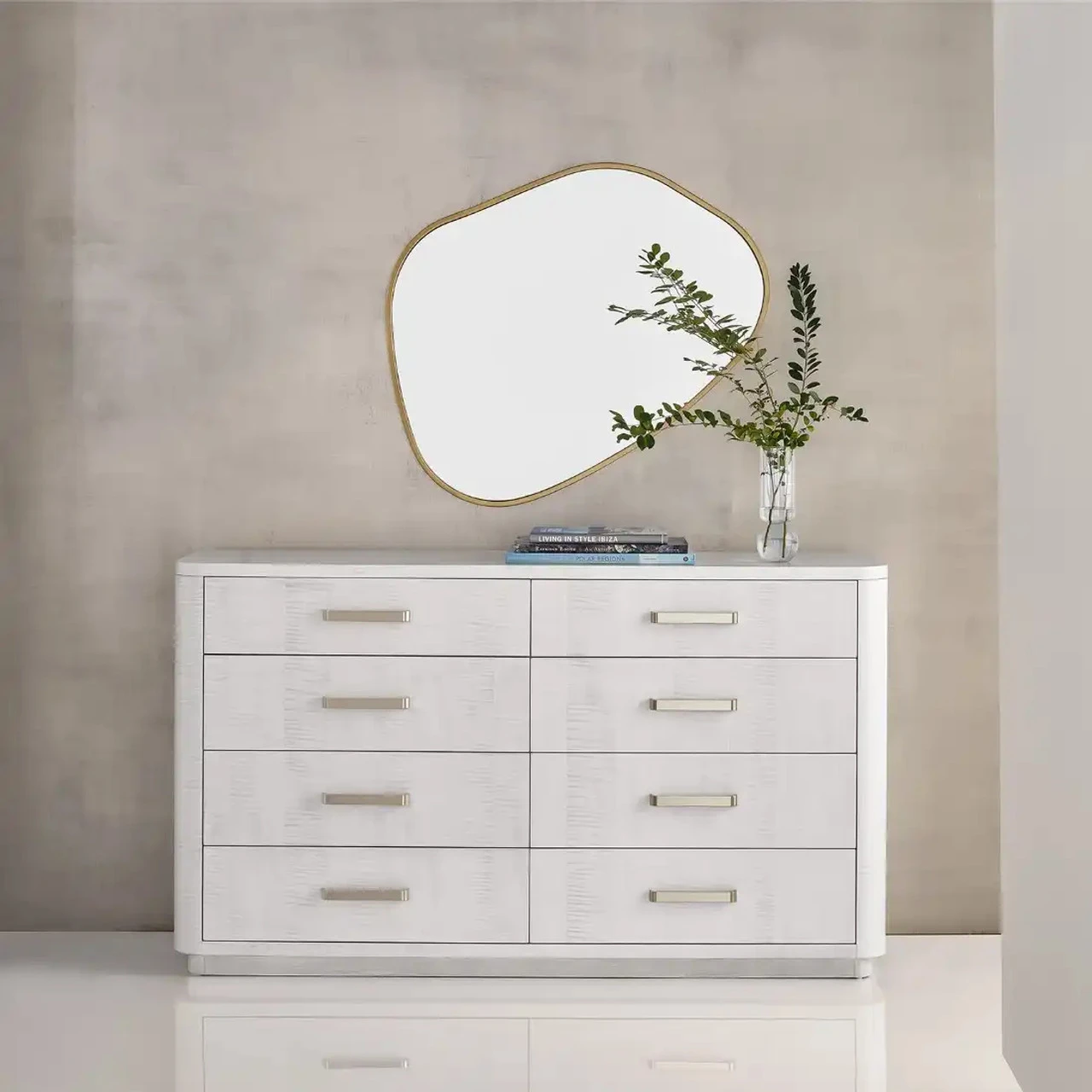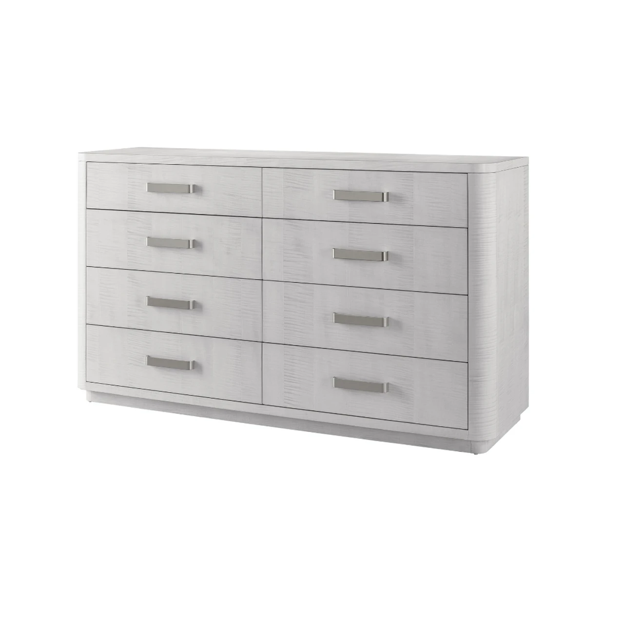 Finished in an opulent white sycamore hue, the Adore Dresser brings luxury to bedroom dwellings with six spacious drawers and abundant silver pulls.