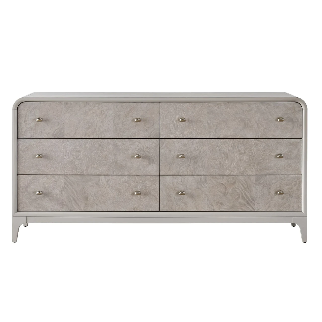 Bring an essential sophistication to bedroom spaces with the Immersion Dresser, a regal statement piece featuring luxurious burl accents complemented by dreamy pull hardware.