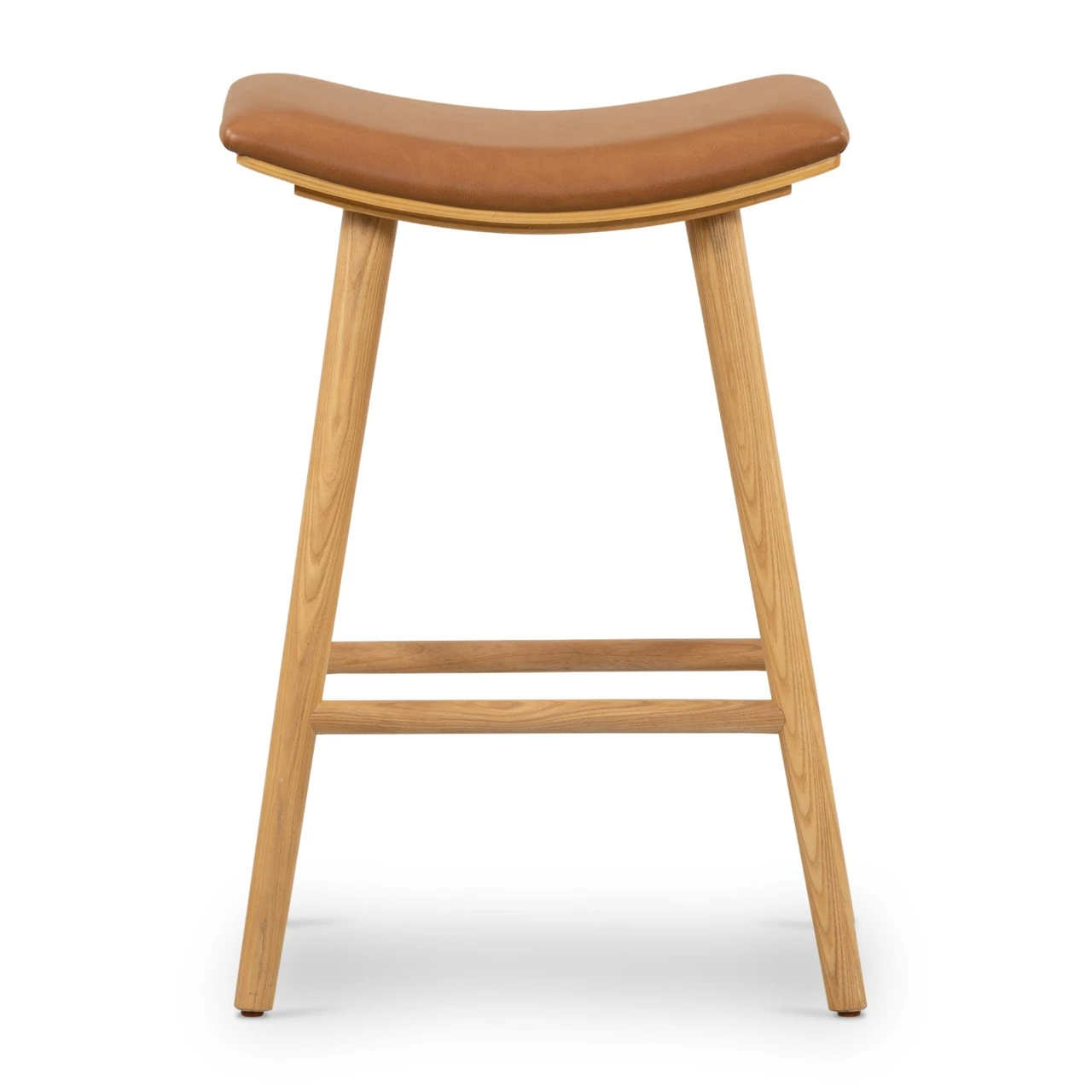 Slim styling meets color contrast for effortless impact. Light carbon-finished oak framing supports a saddle-style seat of natural-toned upholstery. Union Sedona Butterscotch Leather Counter Stools gives a fresh spin on any dining room or kitchen.