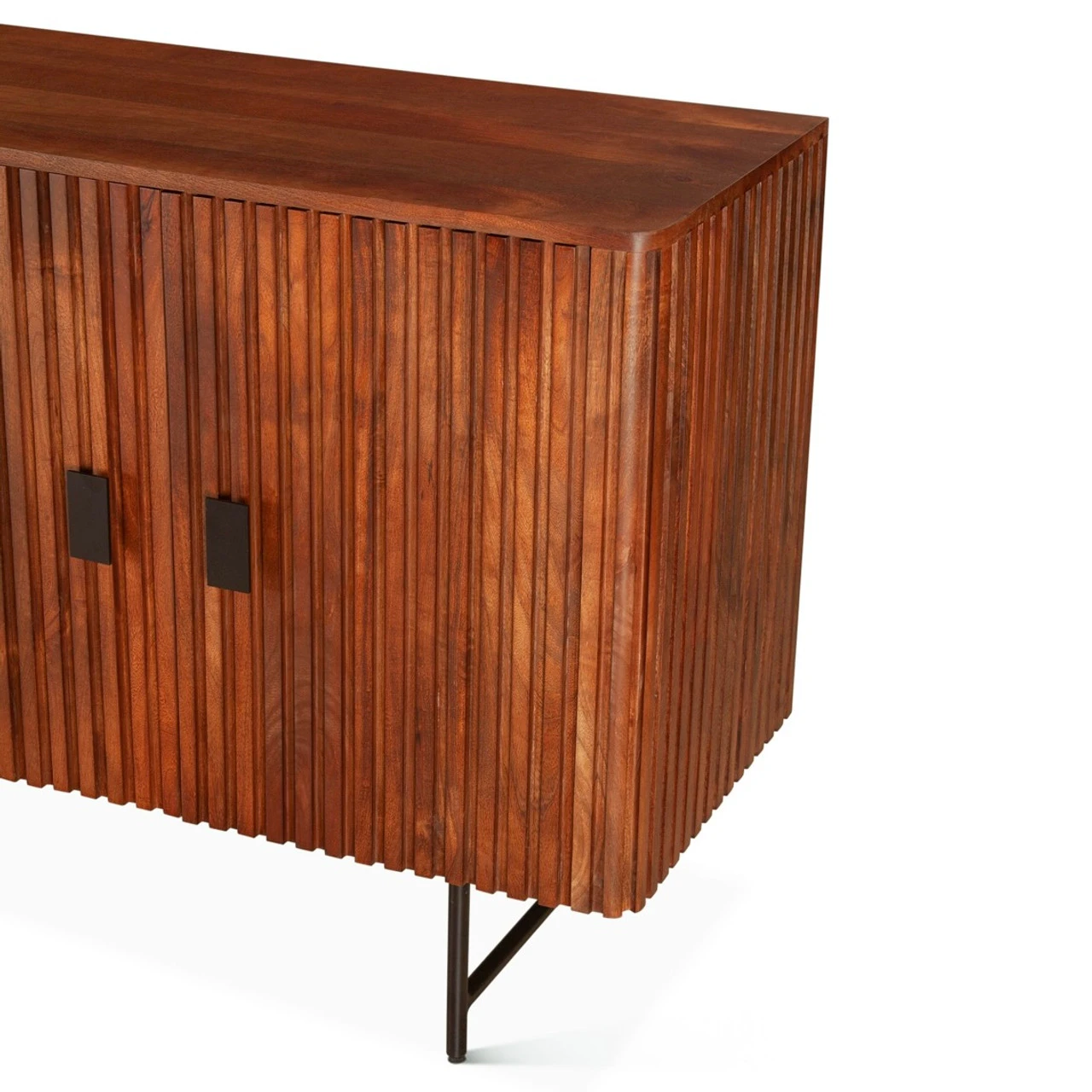Valor stands as a testament to both form and function. The solid acacia wood construction, complemented by durable iron accents in a sleek matte black finish, adds a touch of sophistication to any room.