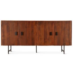 Crafted with precision from high-quality Acacia Wood and iron, the Valor 67″ Sideboard exudes a perfect balance of retro allure and contemporary functionality. Each piece is meticulously designed to offer both style and storage, ensuring your living or dining room essentials are elegantly organized and easily accessible.