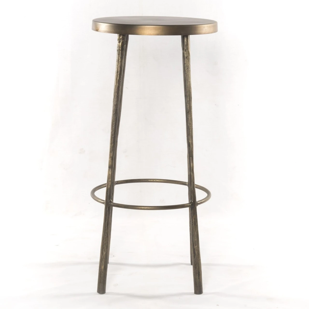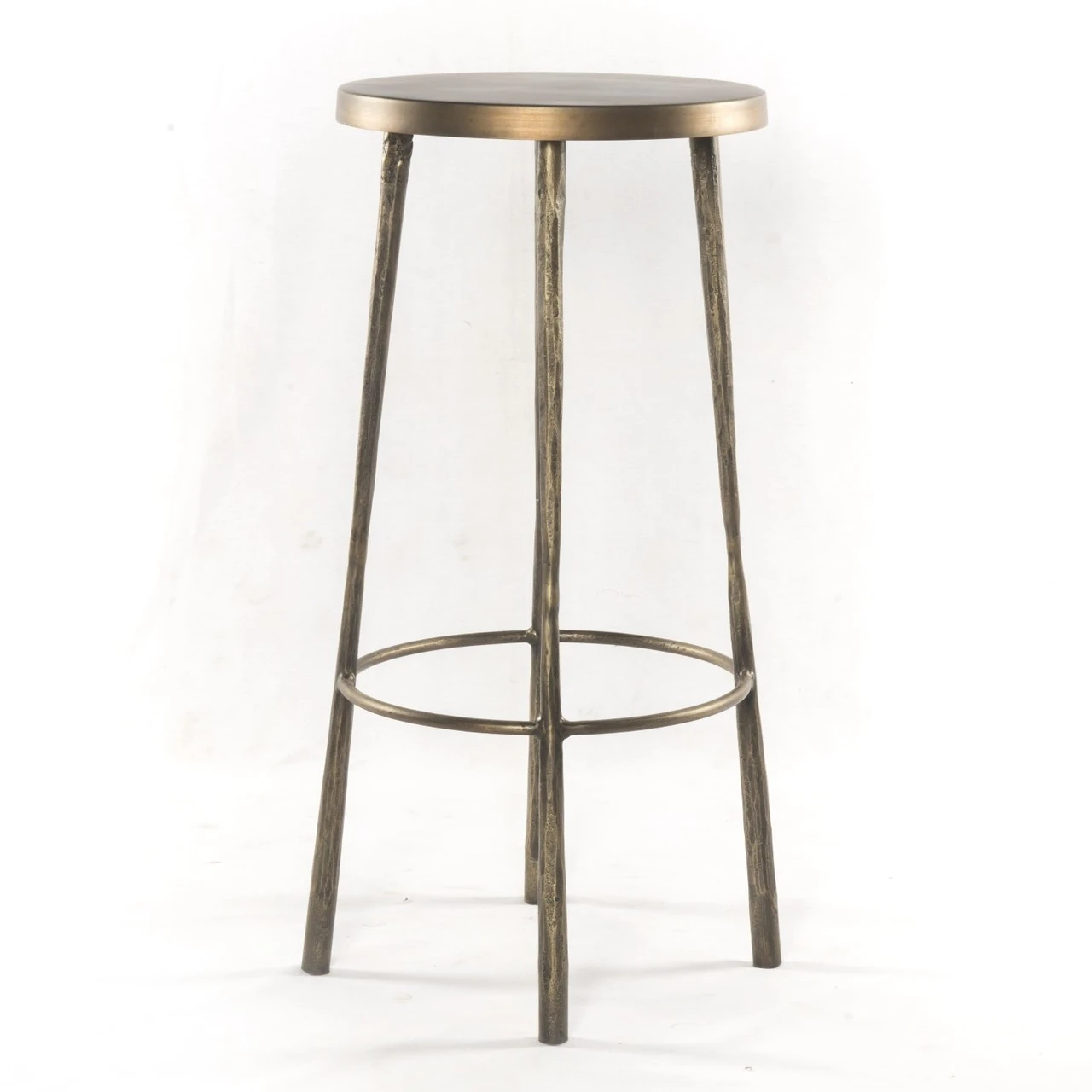 Primitive inspiration leads to a hand-crafted industrial chic look. Antique brass iron is hand-wrought for rich, rough texture that offsets Westwood Industrial Antiqued Brass Bar Stool’s slender form. Perfect paired or in multiples.