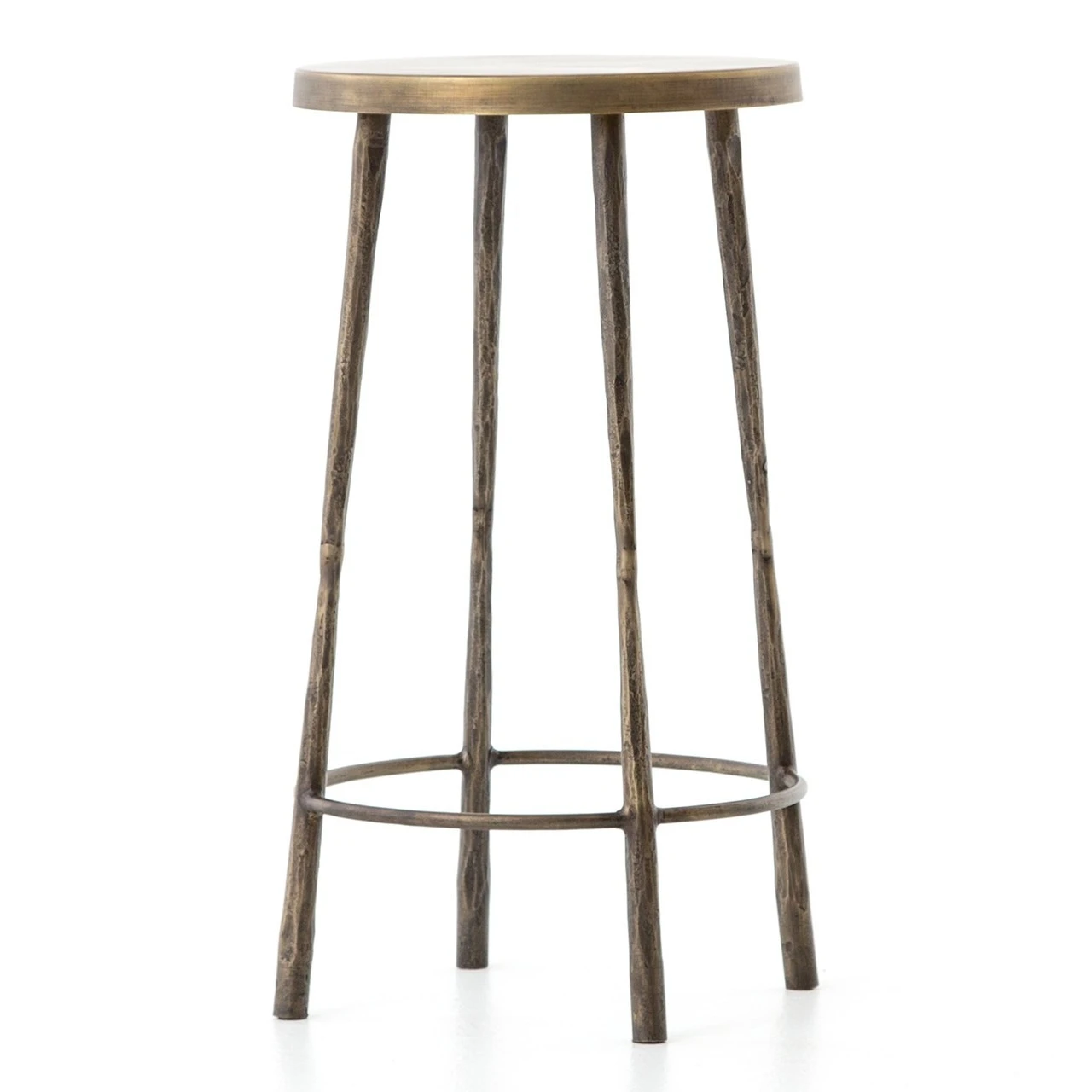 Primitive inspiration leads to a hand-crafted industrial chic look. Antique brass iron is hand-wrought for rich, rough texture that offsets Westwood Industrial Antiqued Brass Counter Stool’s slender form. Perfect paired or in multiples.