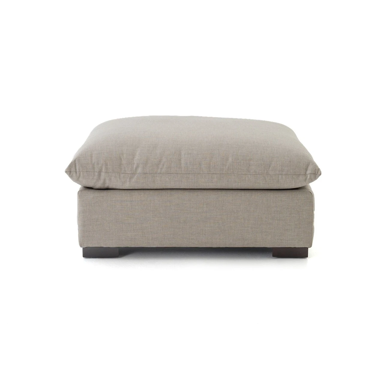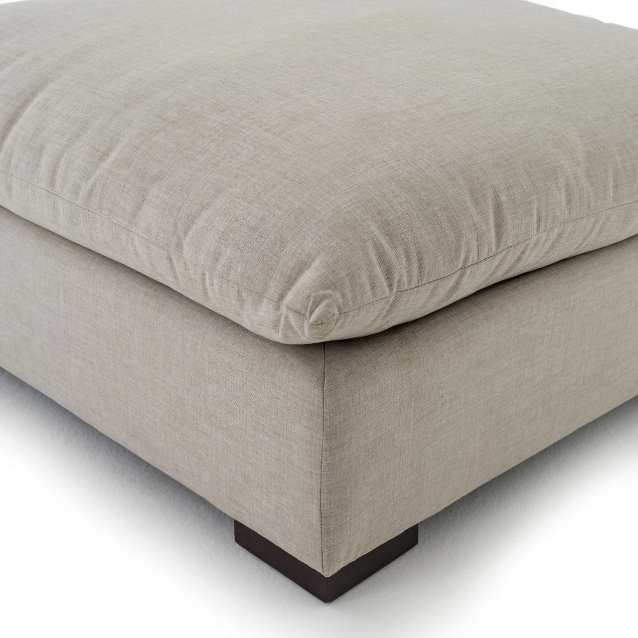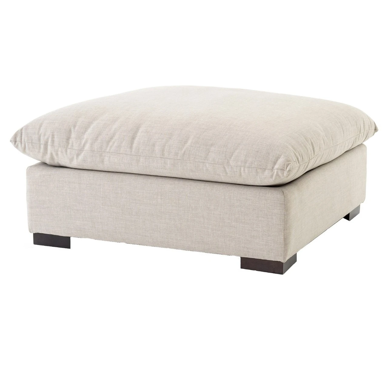 Lounge in ultimate comfort on this fabulous deep-seat ottoman. This modern living room ottoman features super-deep, low seats and super-soft seat cushion that invite family to pile on and sink in. Neutral color knife edge cushioning is upholstered in luxuriously durable and family-friendly 100% polyester, perfect for modern living. The Westworld Modern Neutral Ottoman is a Zin Home favorite and it will be the focal point in any living room decor.