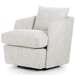 A comfortable classic. Atop a 360-degree swivel base, well-tailored cotton seating provides a beautifully simple place to perch in style, with feather-blend cushioning for total relaxation. Performance fabrics are specially created to withstand spills, stains, high traffic and wear, ensuring long-term comfort and unmatched durability.