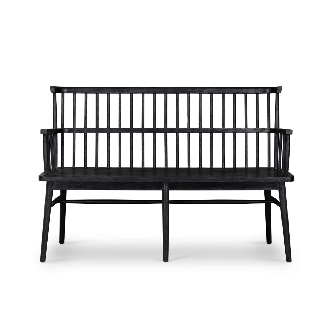 Modern twist on the traditional Windsor chairs adds clean lines and a youthful pop of color. A fresh, forward-thinking take on Windsor-style seating, with a sculptural silhouette and matte black finish to play up parawood’s natural luster. this mid-century modern Windsor bench add a nostalgic note that will transform dining spaces to office spaces and any corner in need of an eye-catching place to sit.