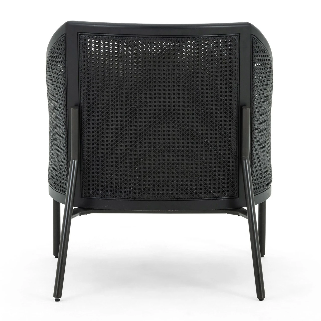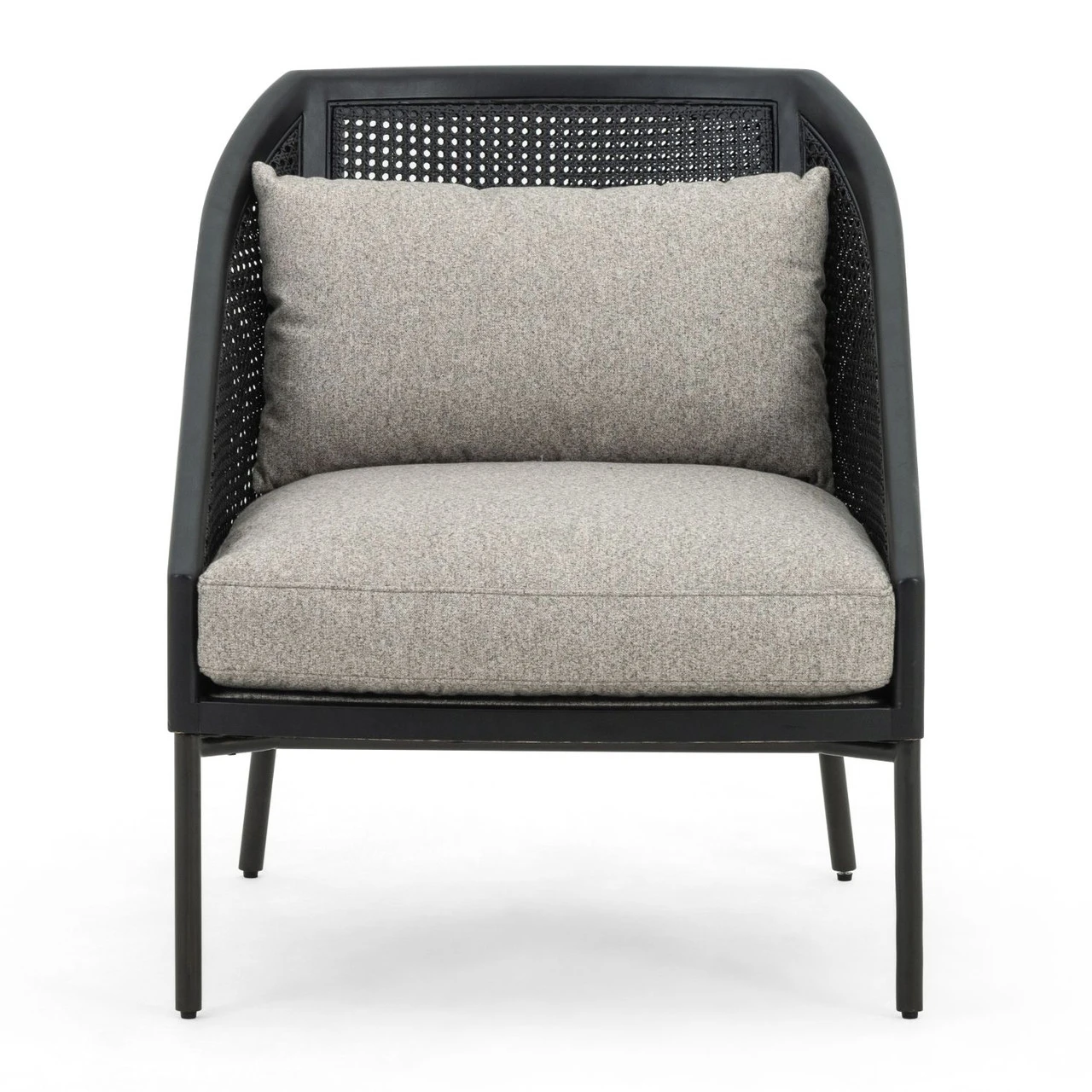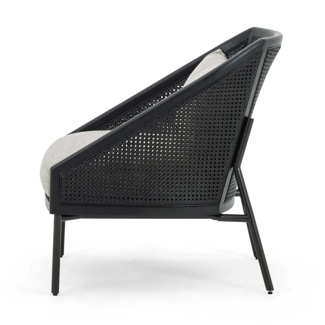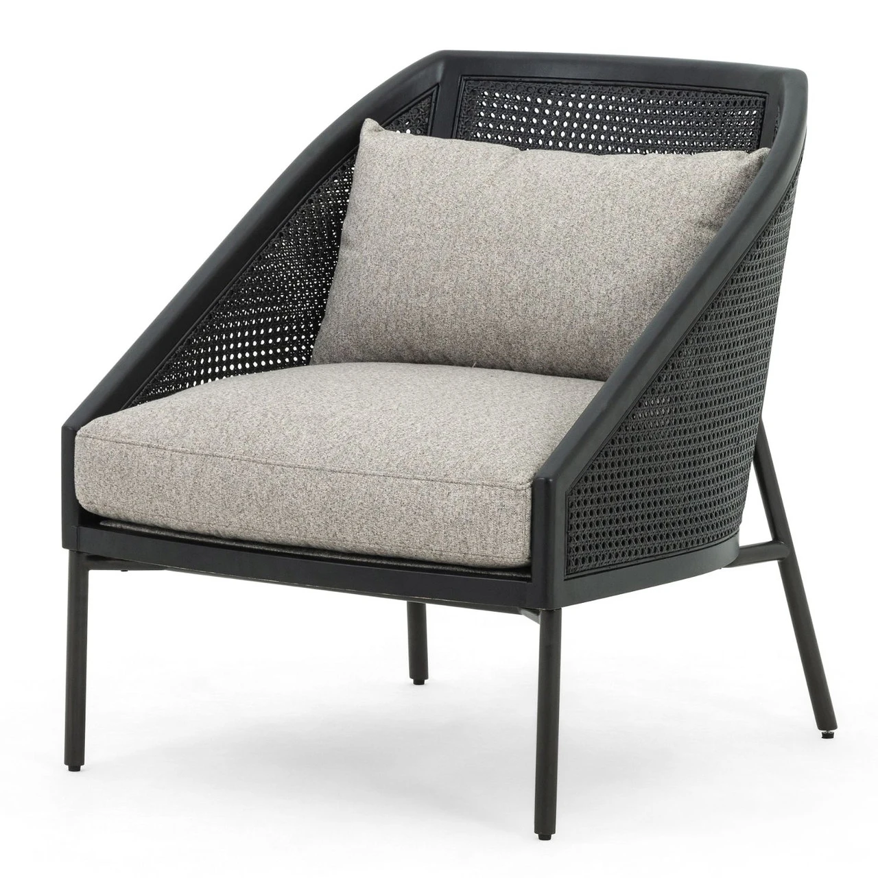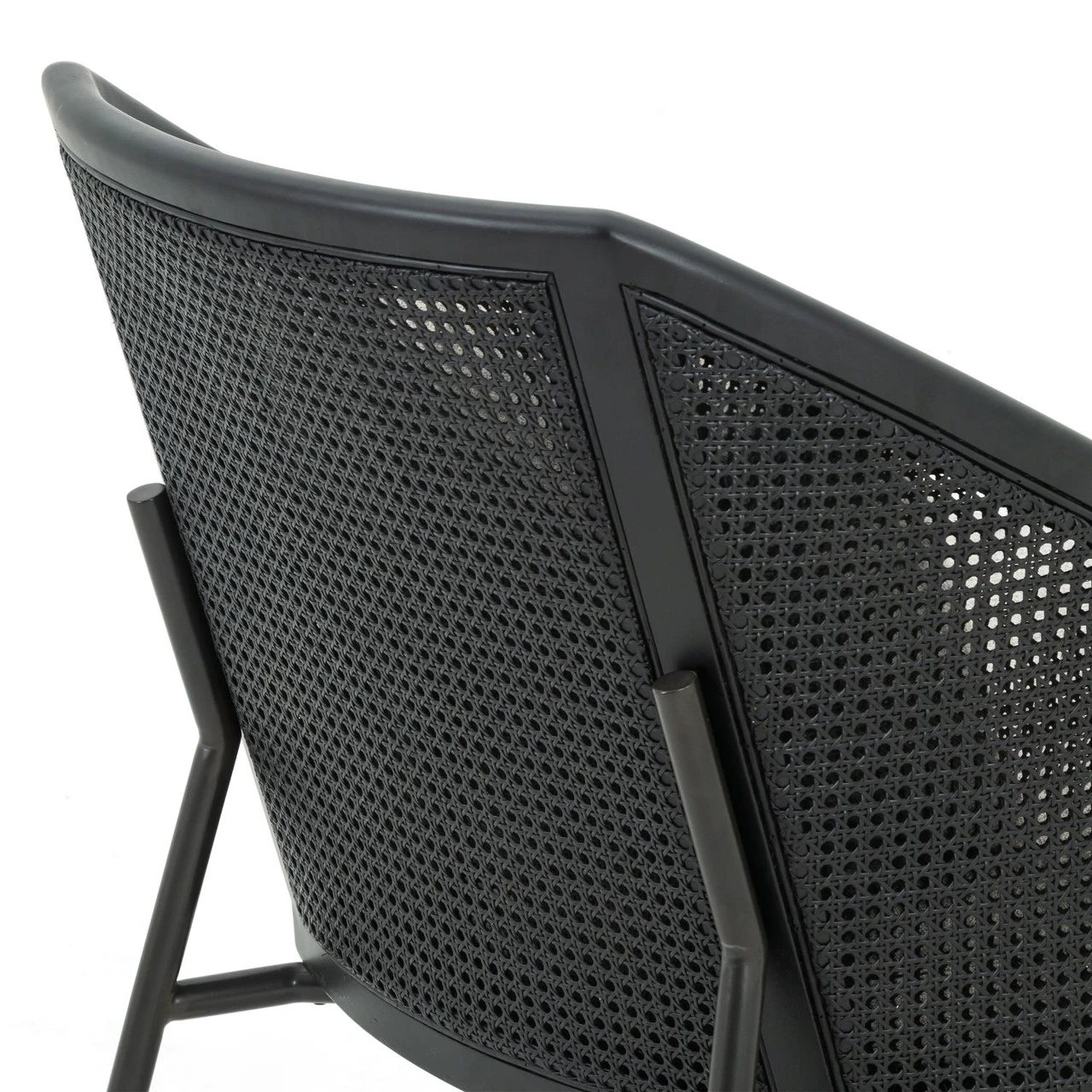 The right angle. A modern, material-driven take on a classically sleek silhouette, slim iron legs and textural black rattan, framed out by solid FSC-certified rubberwood. With plush feather-blend cushioning for guaranteed comfort.