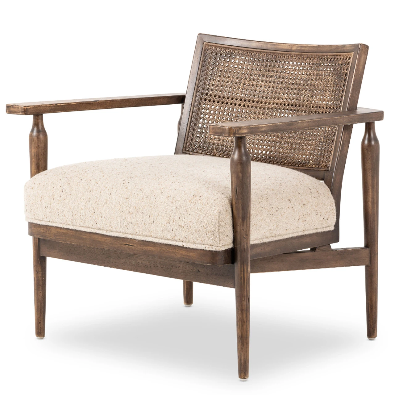 An antique style is reimagined with a rich cane backing and sustainably made, stone-washed Belgian Linen™. Detailed with fluted tapered legs and smooth arms that wrap around the back for the look of a vintage market find. Naturally durable and soft to the touch, Libeco™-sourced linens are artisan-made and free of toxic chemicals. Perfect as an accent chair or in pairs.