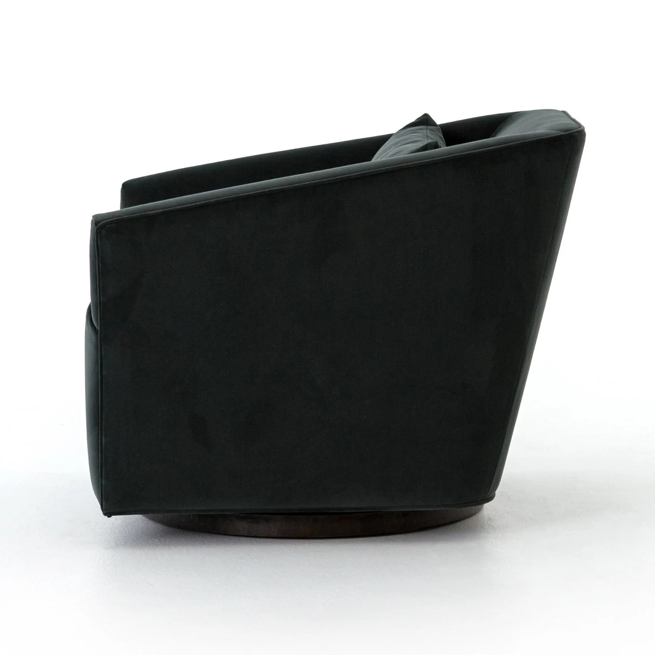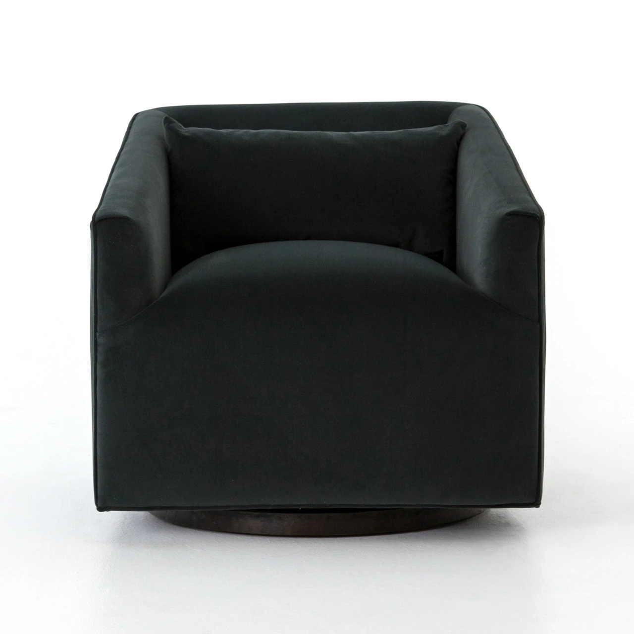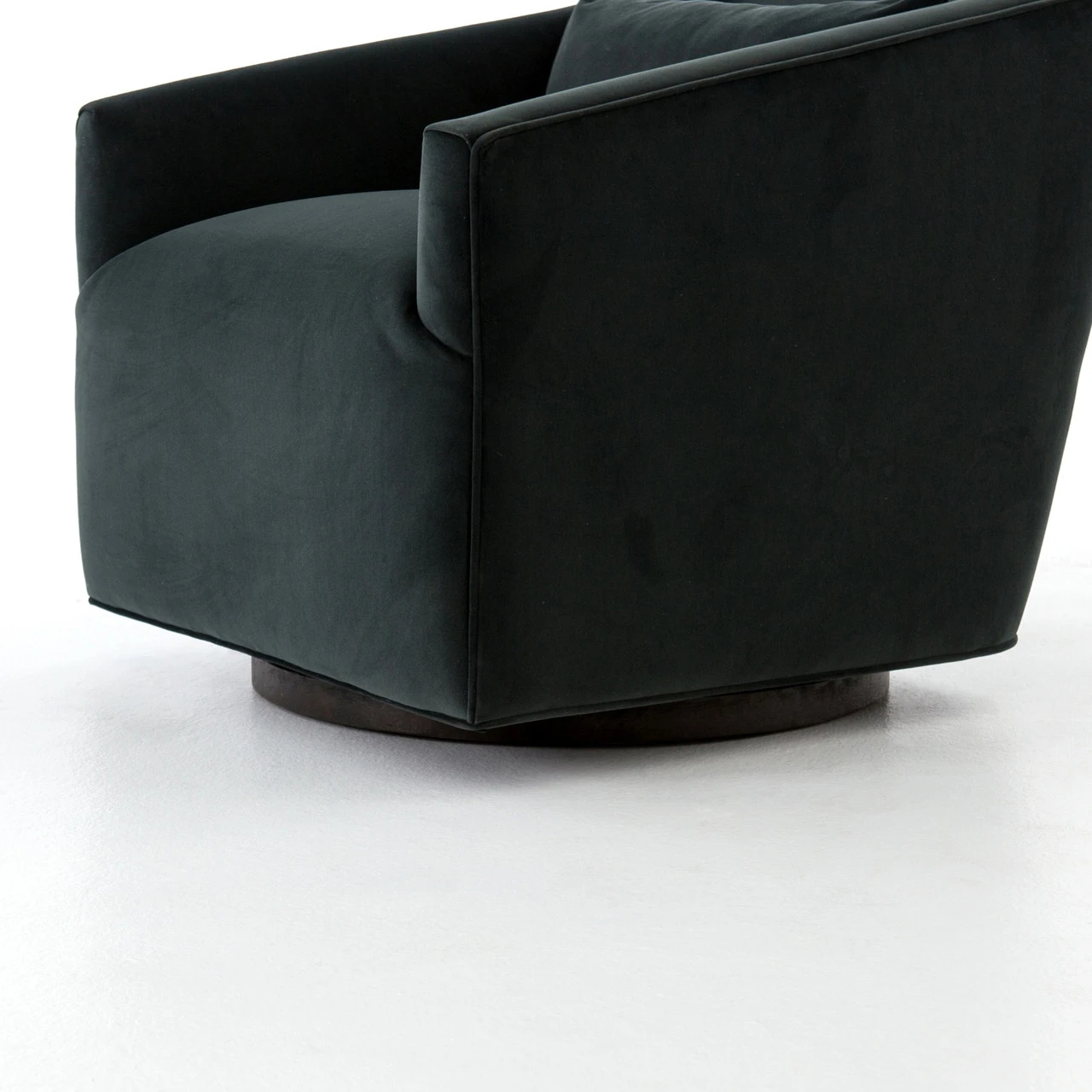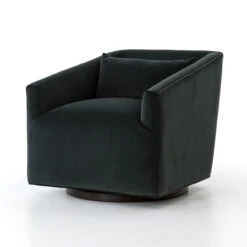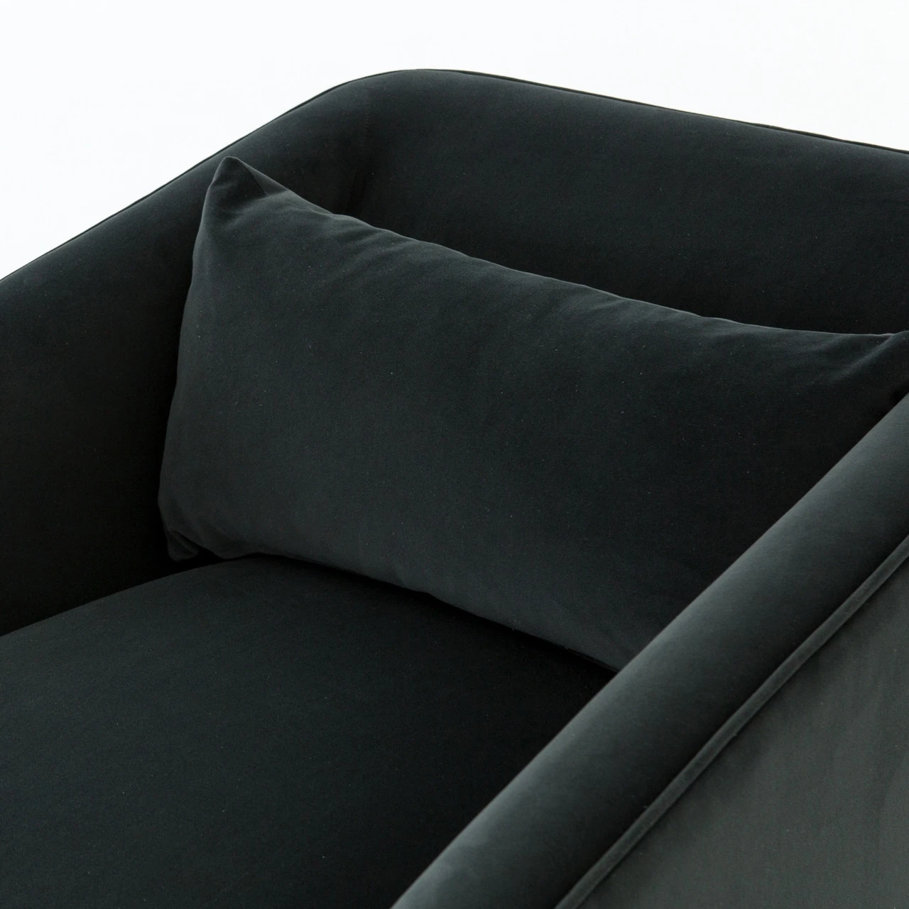 Small scale, substantial comfort. Precisely-tailored seating in a smoky velvet that offers a touch of light movement. Moss-tinged charcoal hue adds a fashion-forward twist.