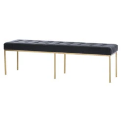 Stylishly elegant, the contemporary classic Zephyr Tufted Black Leather Bench is an ideal choice for any home. With a beautifully polished antique brass frame and tufted black leather upholstery. This luxurious bench will be a versatile addition to your furnishing.