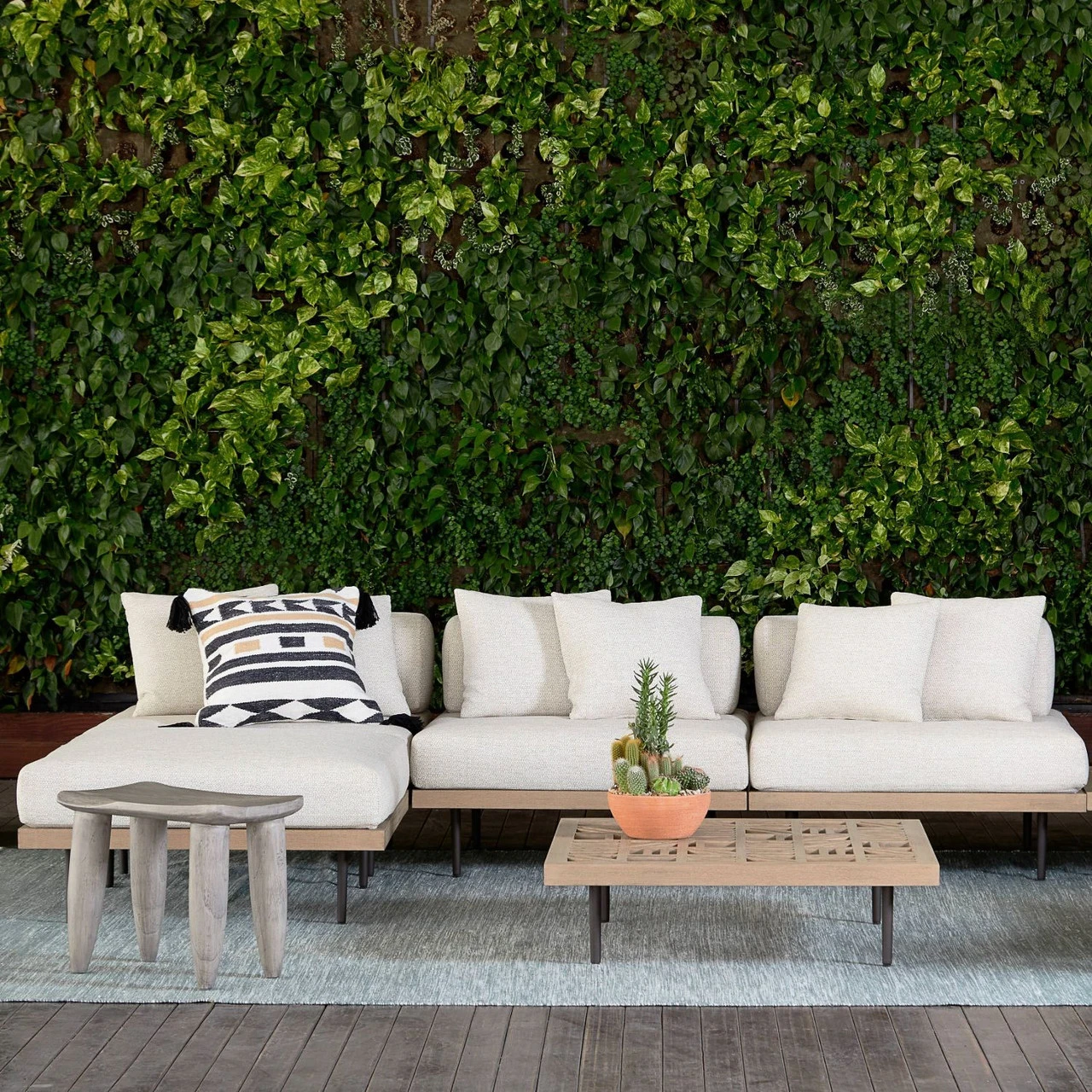Inspired by authentic West African design, weathered grey-finished teak features organic knots, holes and graining to reflect its materials’ rich roots, indoors or out. Wood texture, color and graining will vary from piece to piece – a reflection of materials’ organic nature. Cover or store inside during inclement weather and when not in use.